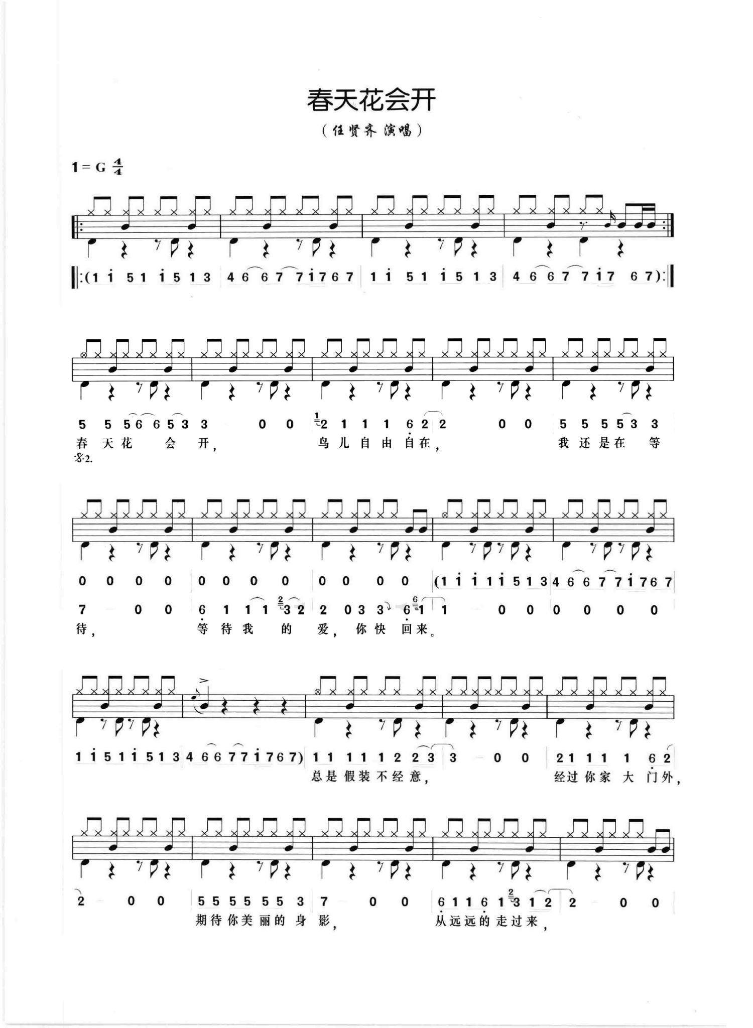 • 春天花会开鼓谱 - 任贤齐 - 架子鼓谱第1张