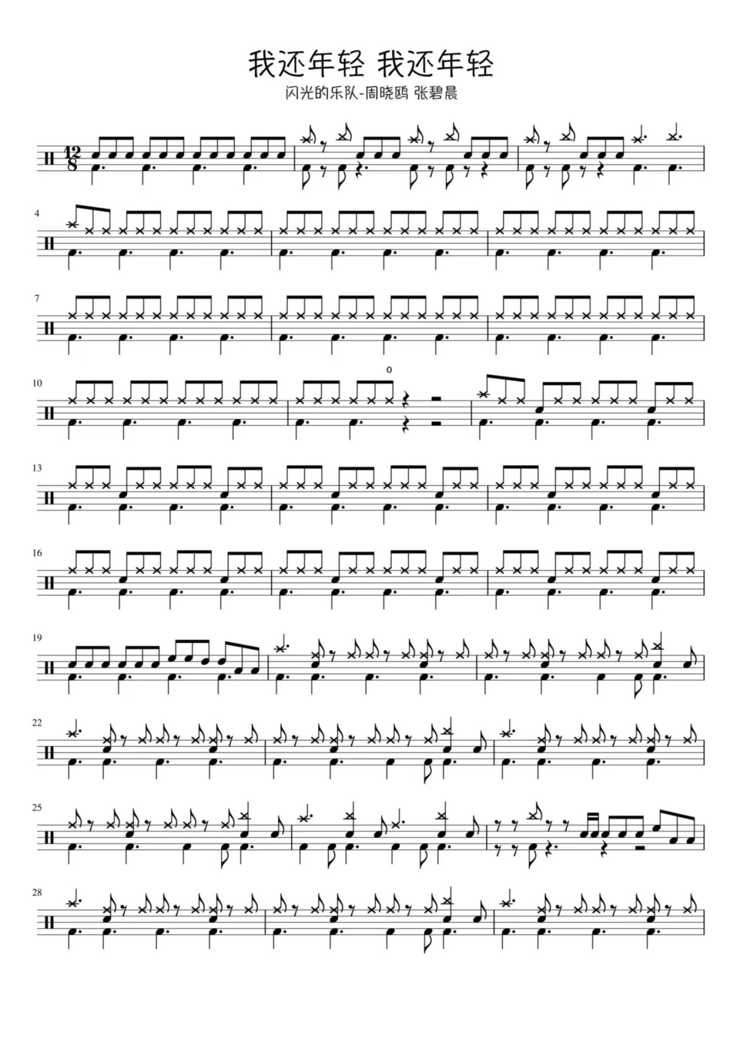 • 我还年轻 我还年轻鼓谱 - 闪光的乐队 周晓鸥 张碧晨 - 架子鼓谱第1张
