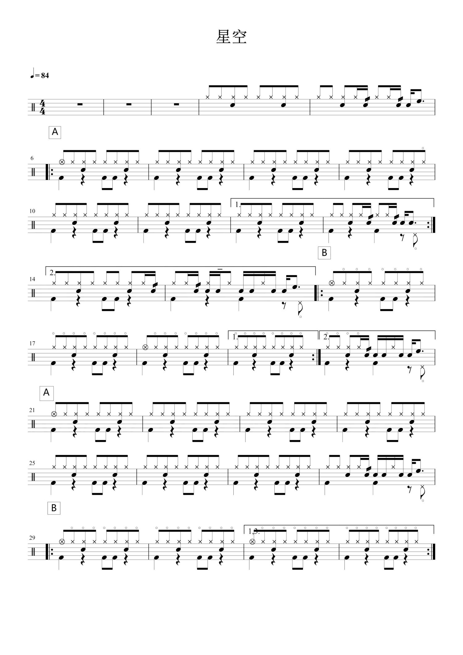 • 星空鼓谱 - 五月天 - 架子鼓谱第1张