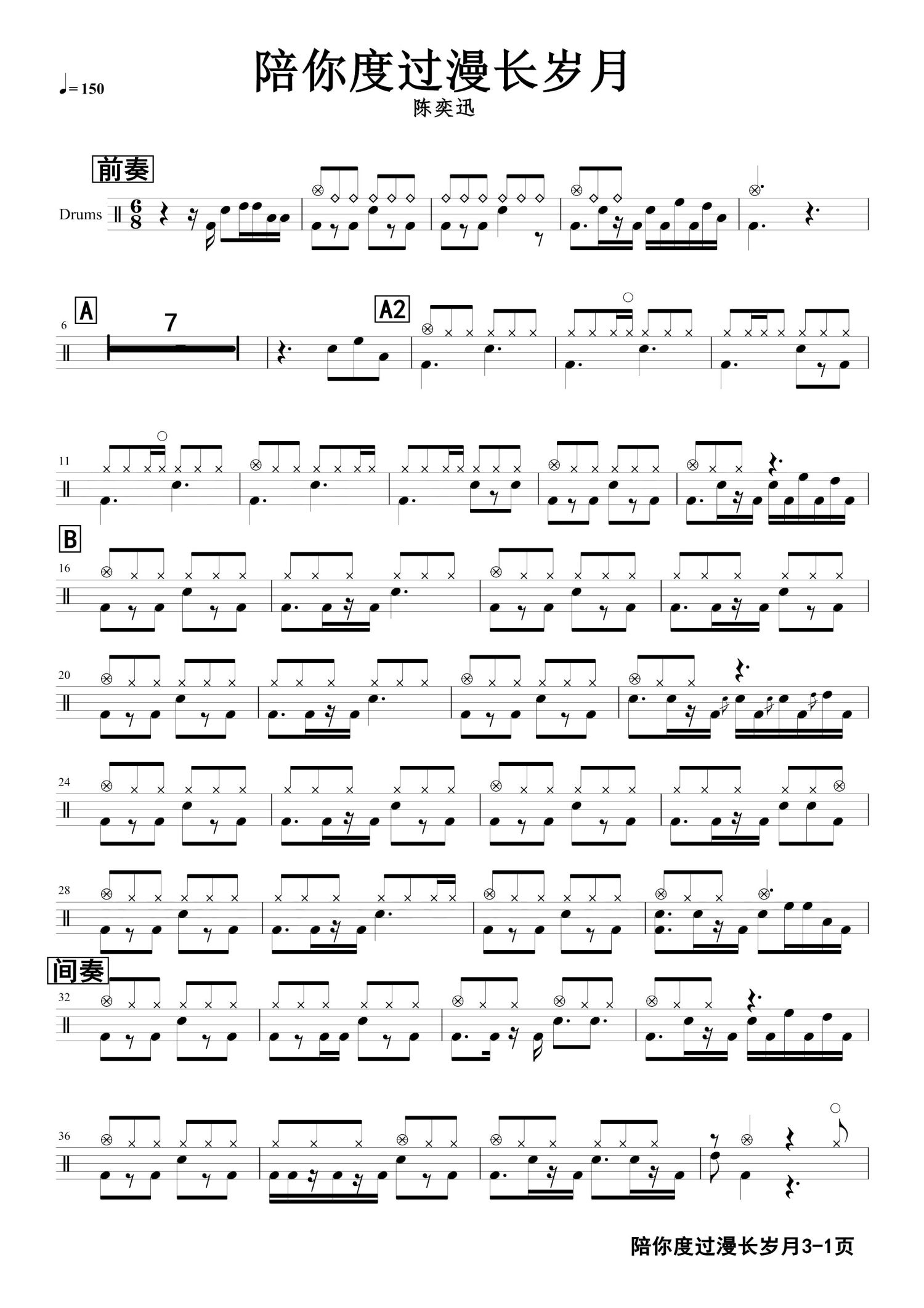 • 陪你度过漫长岁月鼓谱 - 陈奕迅 - 架子鼓谱第1张