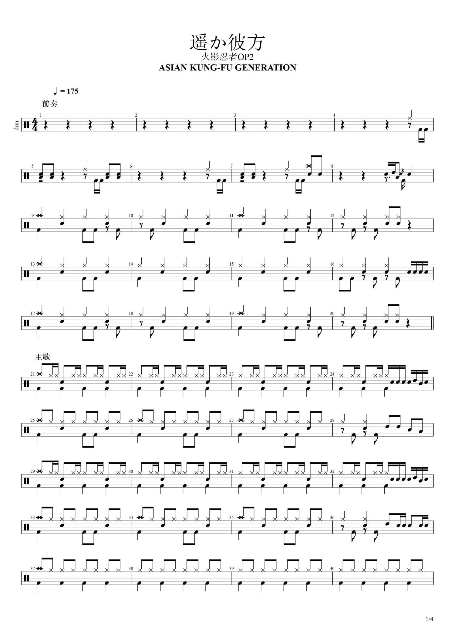• 遥か彼方鼓谱 - ASIAN KUNG-FU GENERATION - 架子鼓谱第1张