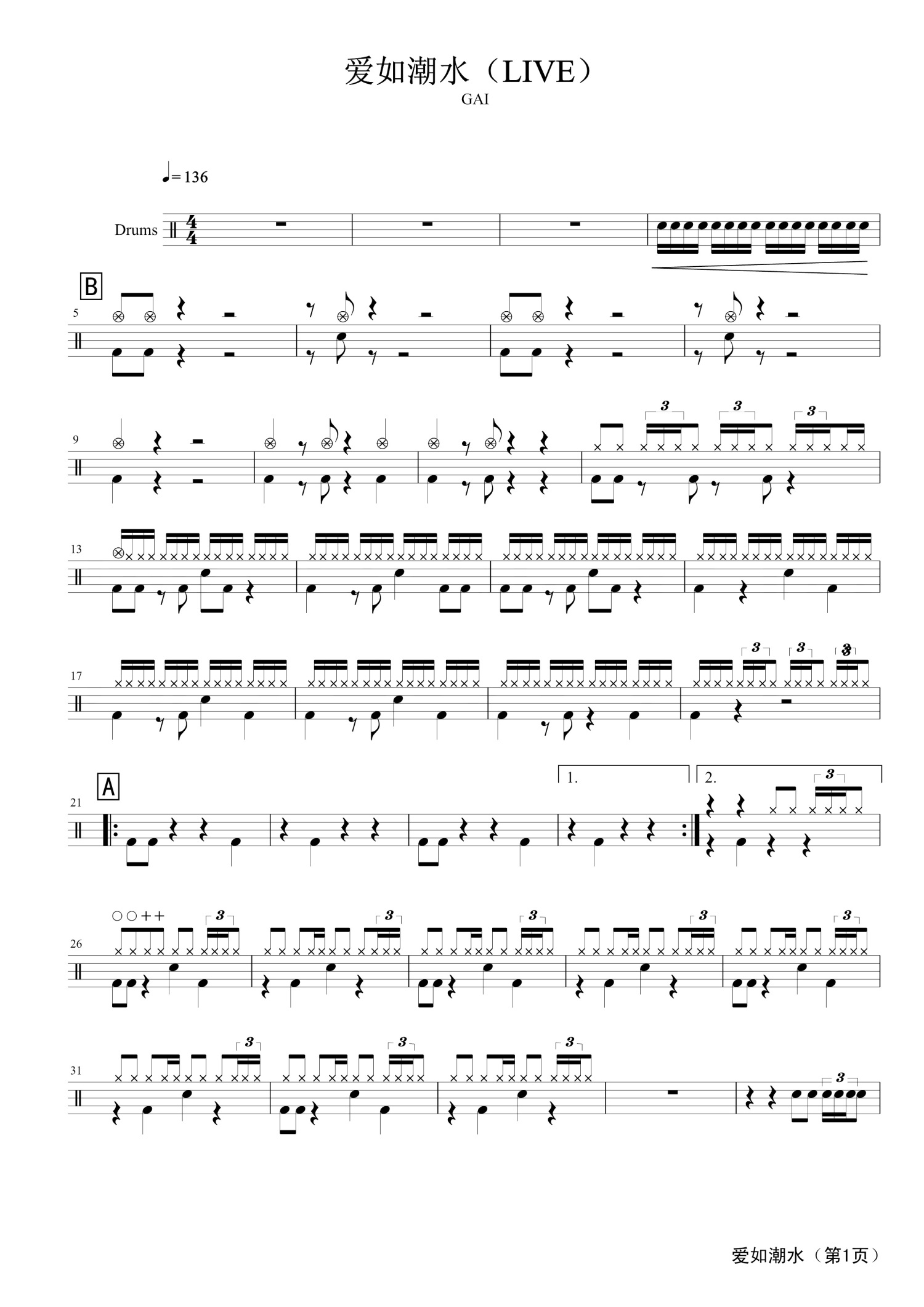 • 爱如潮水鼓谱 - GAI - 架子鼓谱第1张