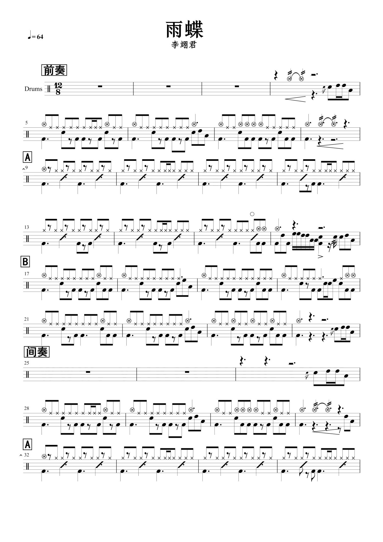 • 雨蝶鼓谱 - 李翊君 - 架子鼓谱第1张