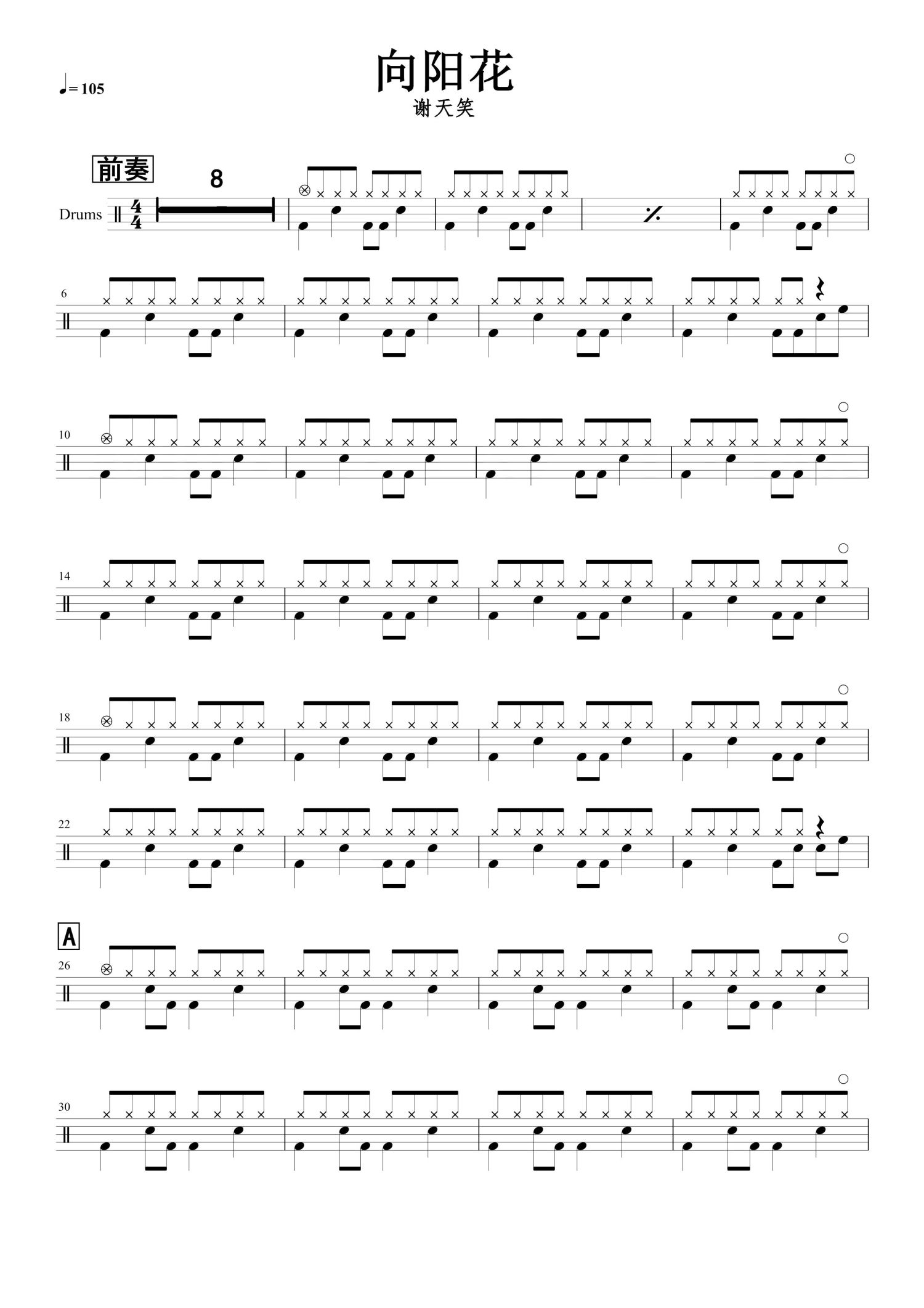 • 向阳花鼓谱 - 谢天笑 - 架子鼓谱第1张