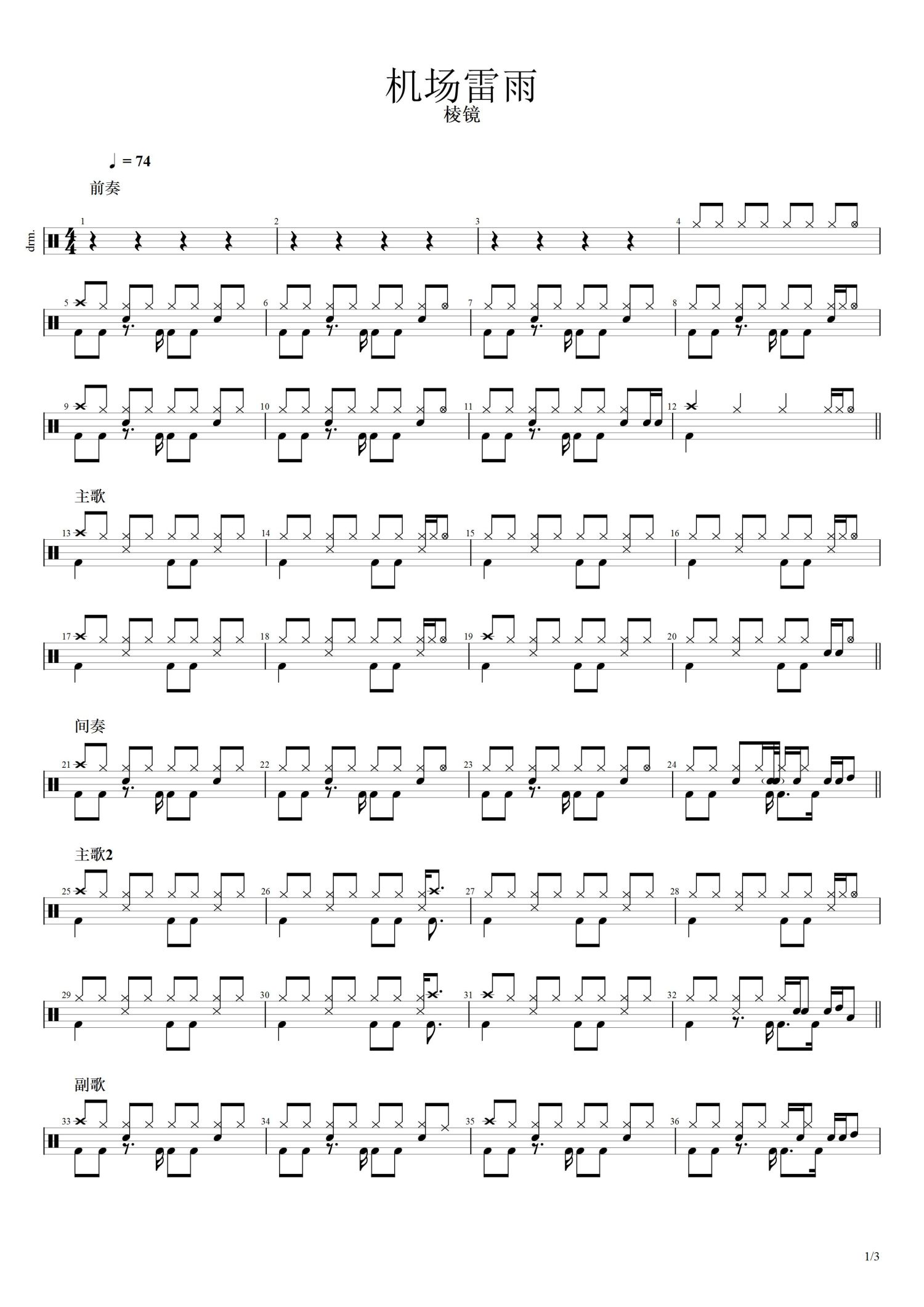 • 机场雷雨鼓谱 - 棱镜 - 架子鼓谱第1张