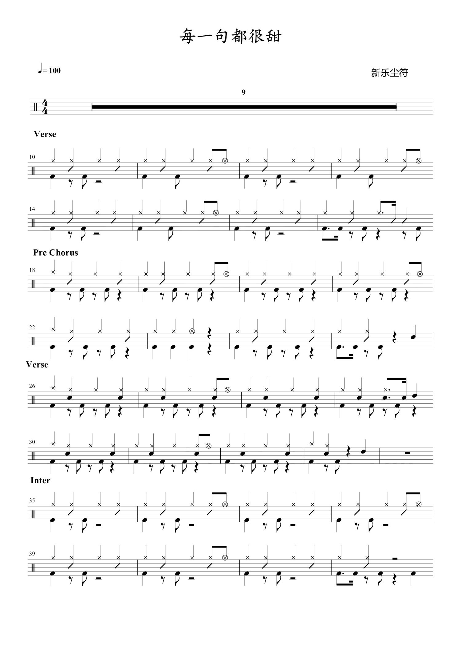 • 每一句都很甜鼓谱 - 新乐尘符 - 架子鼓谱第1张