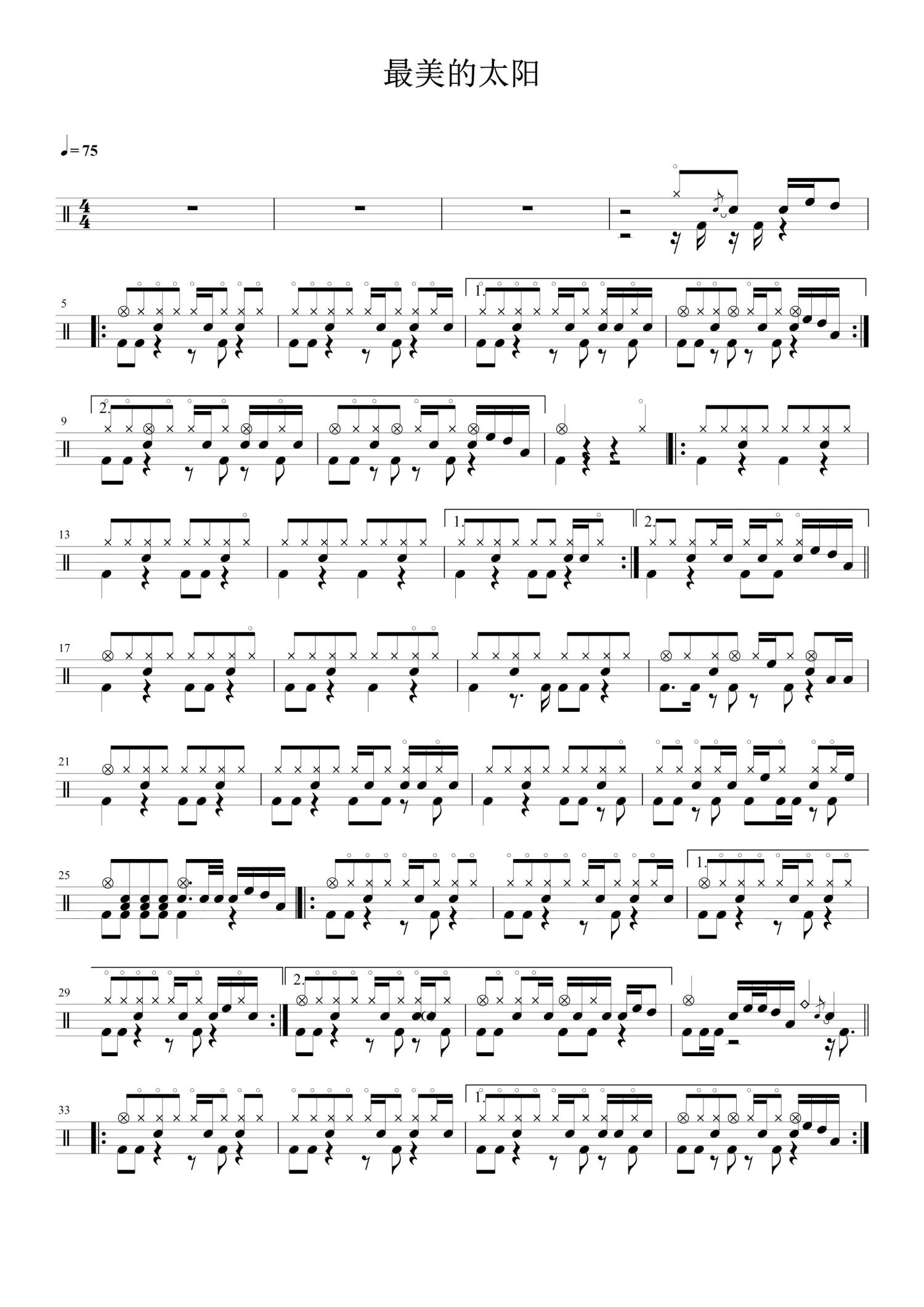 • 最美的太阳鼓谱 - 张杰 - 架子鼓谱第1张