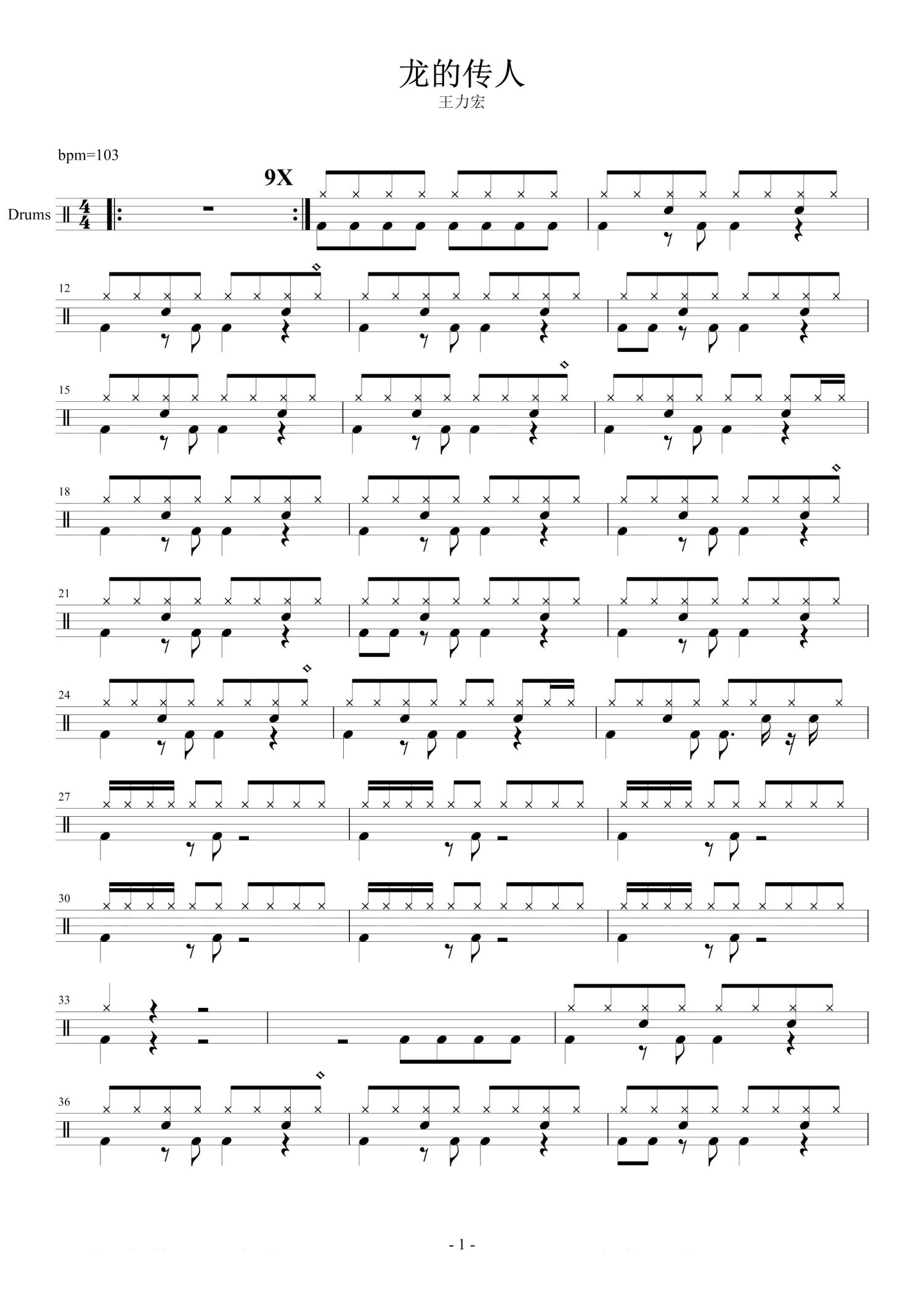 • 龙的传人鼓谱 - 王力宏 - 架子鼓谱第1张