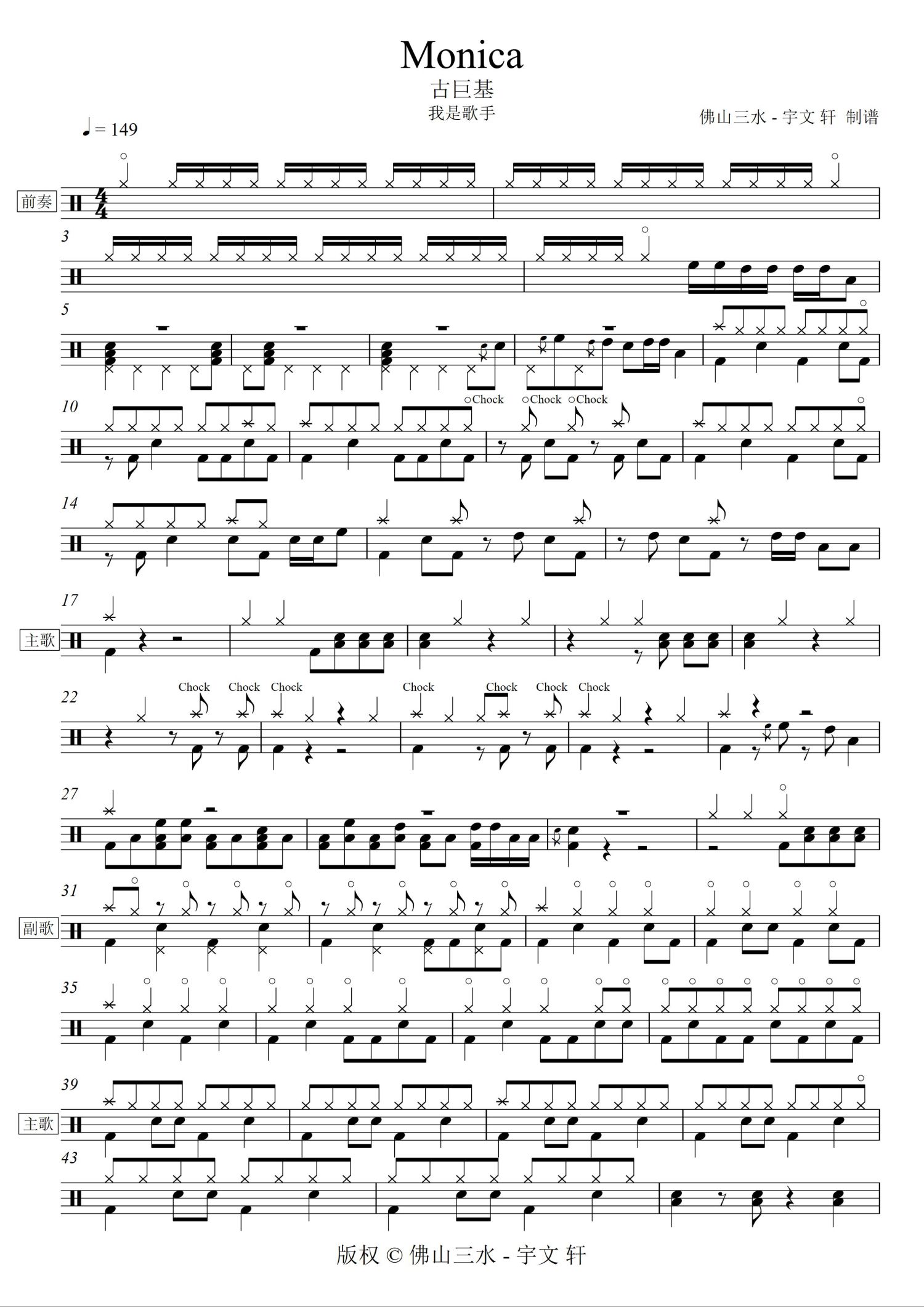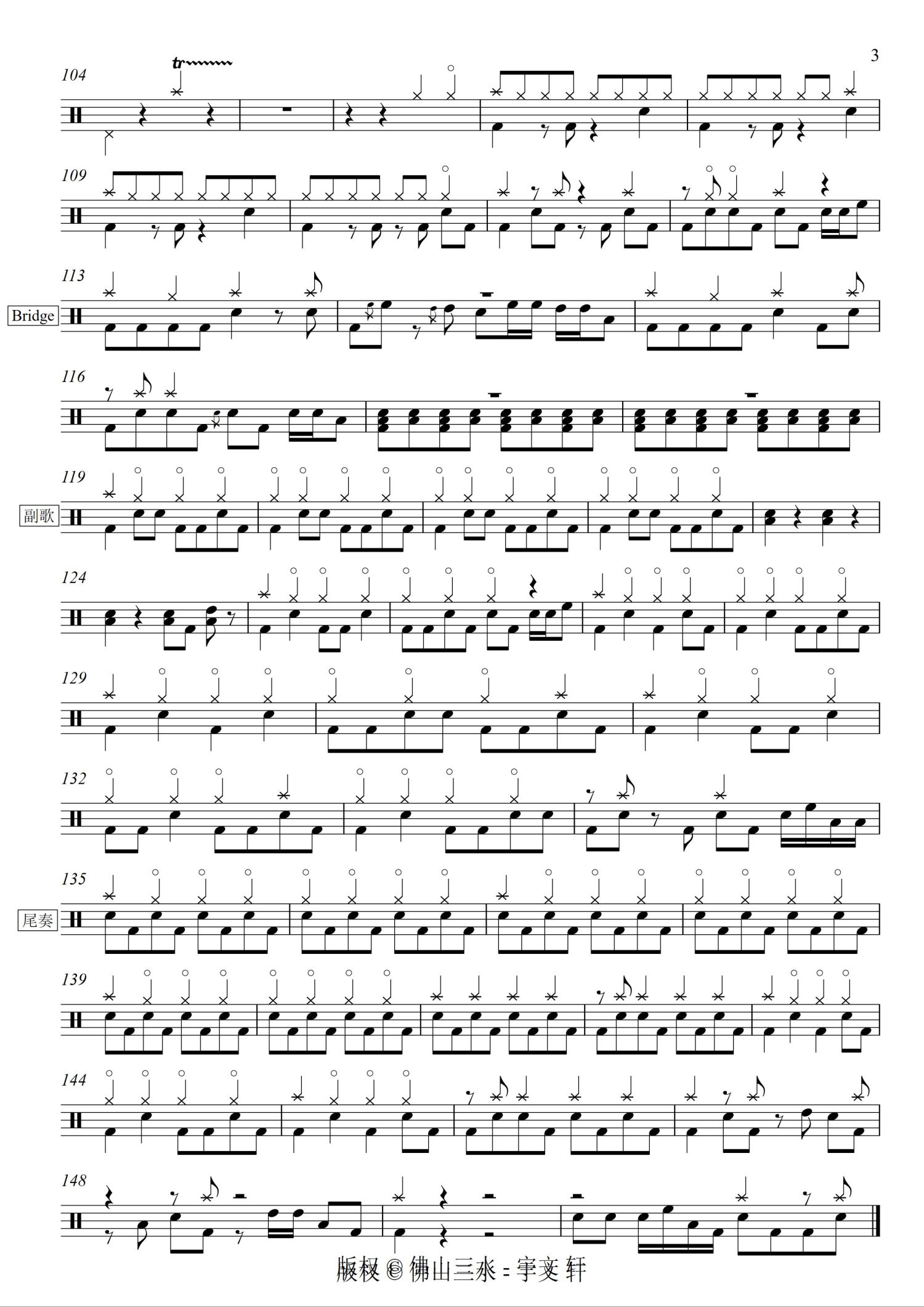 架子鼓谱原调来源:佛山三水 - 宇文轩1044 浏览2022-05-10 10:08发布图谱共3页