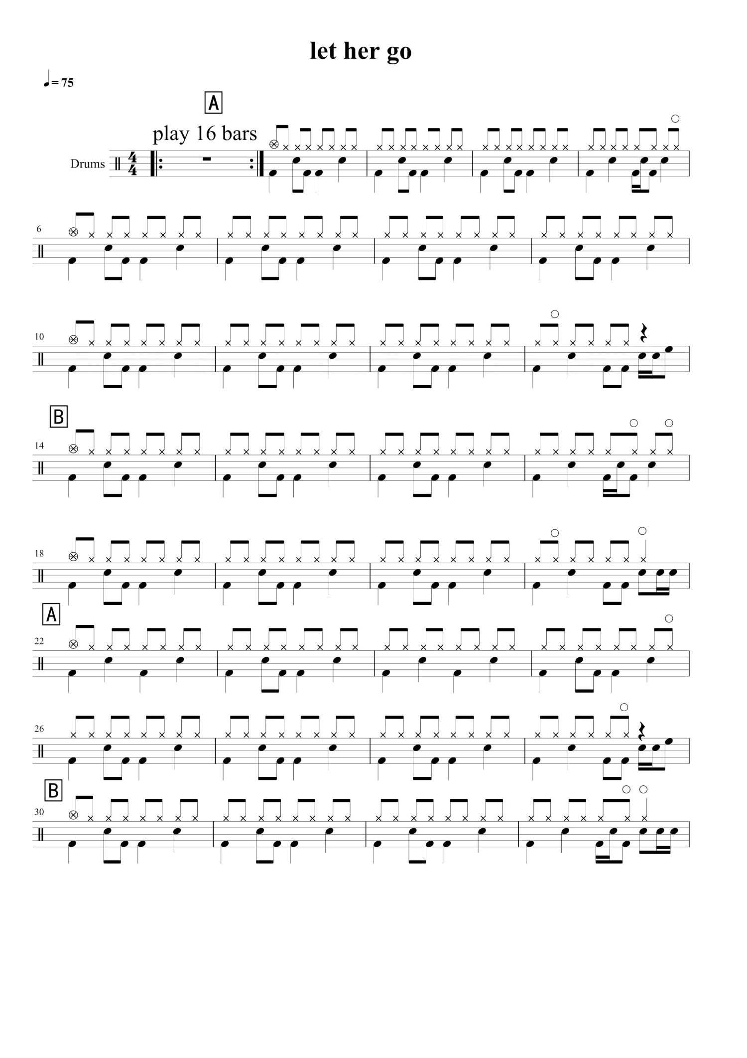 • Let Her Go鼓谱 - Passenger - 架子鼓谱第1张