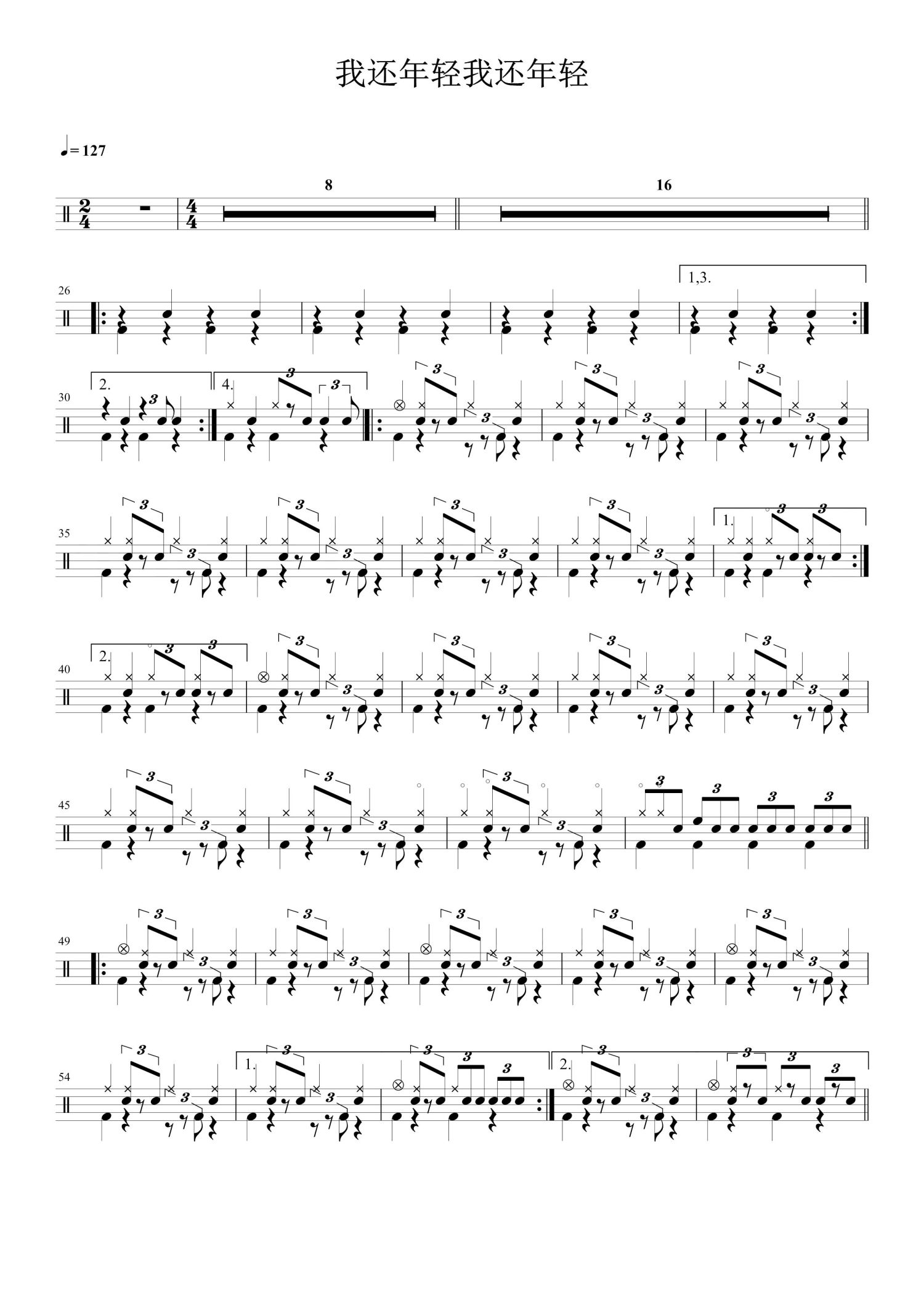 当前位置:琴谱网>架子鼓谱>我还年轻我还年轻