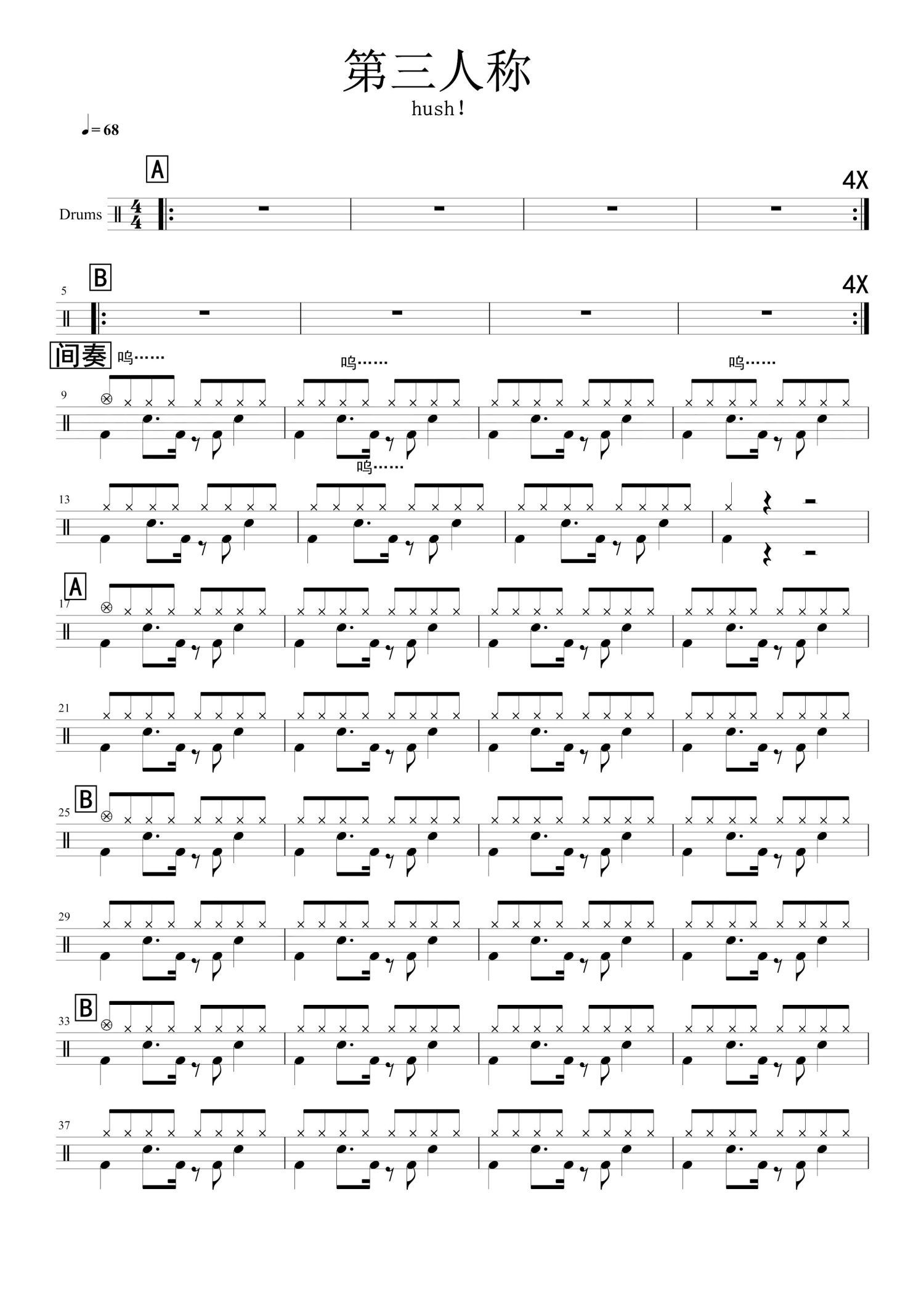 • 第三人称鼓谱 - Hush! - 架子鼓谱第1张