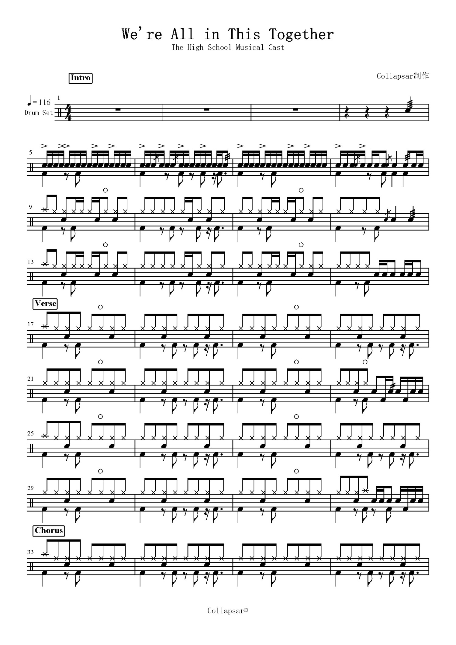 We're All In This Together鼓谱 - High School Musical - 架子鼓谱