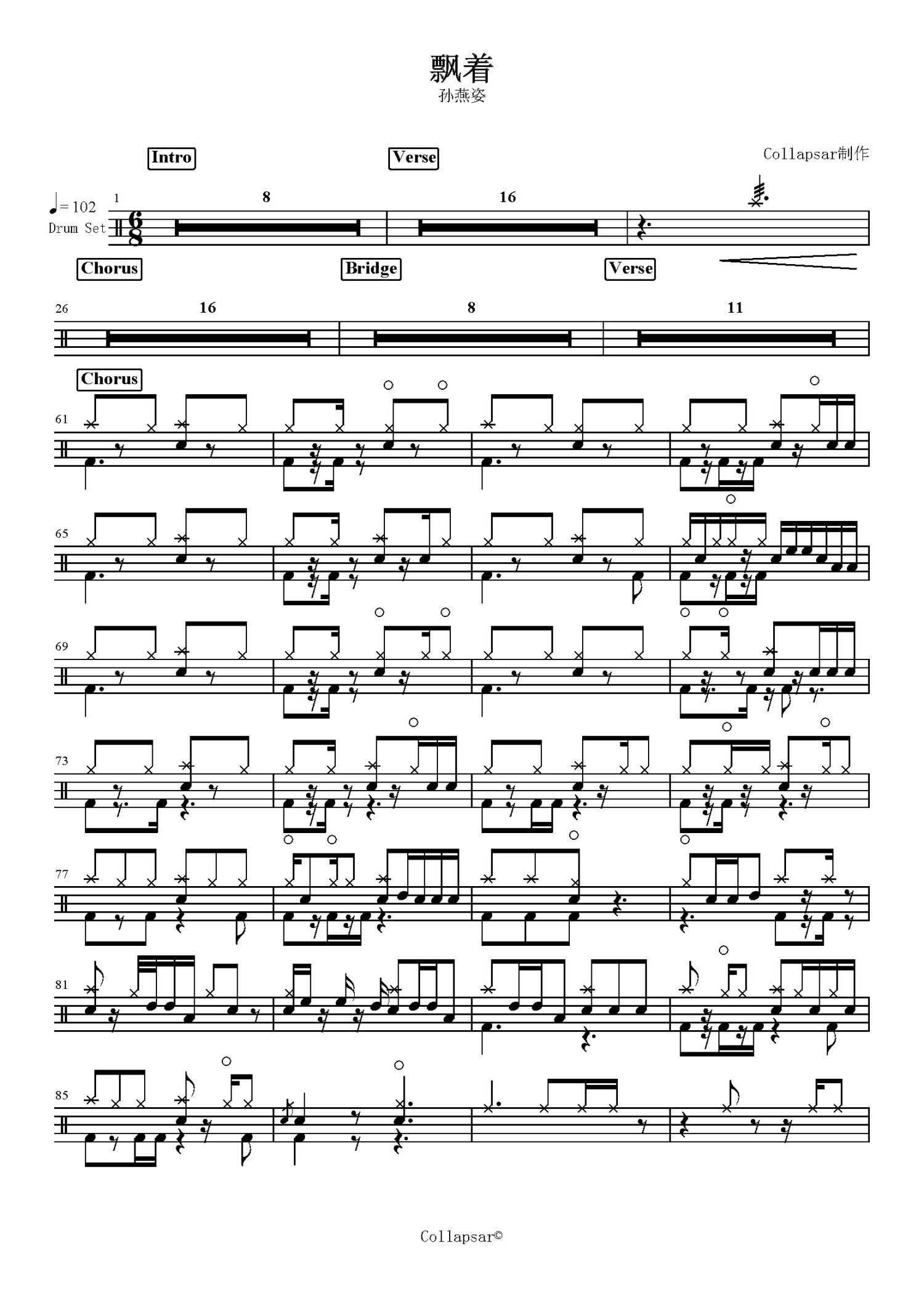 • 飘着鼓谱 - 孙燕姿 - 架子鼓谱第1张
