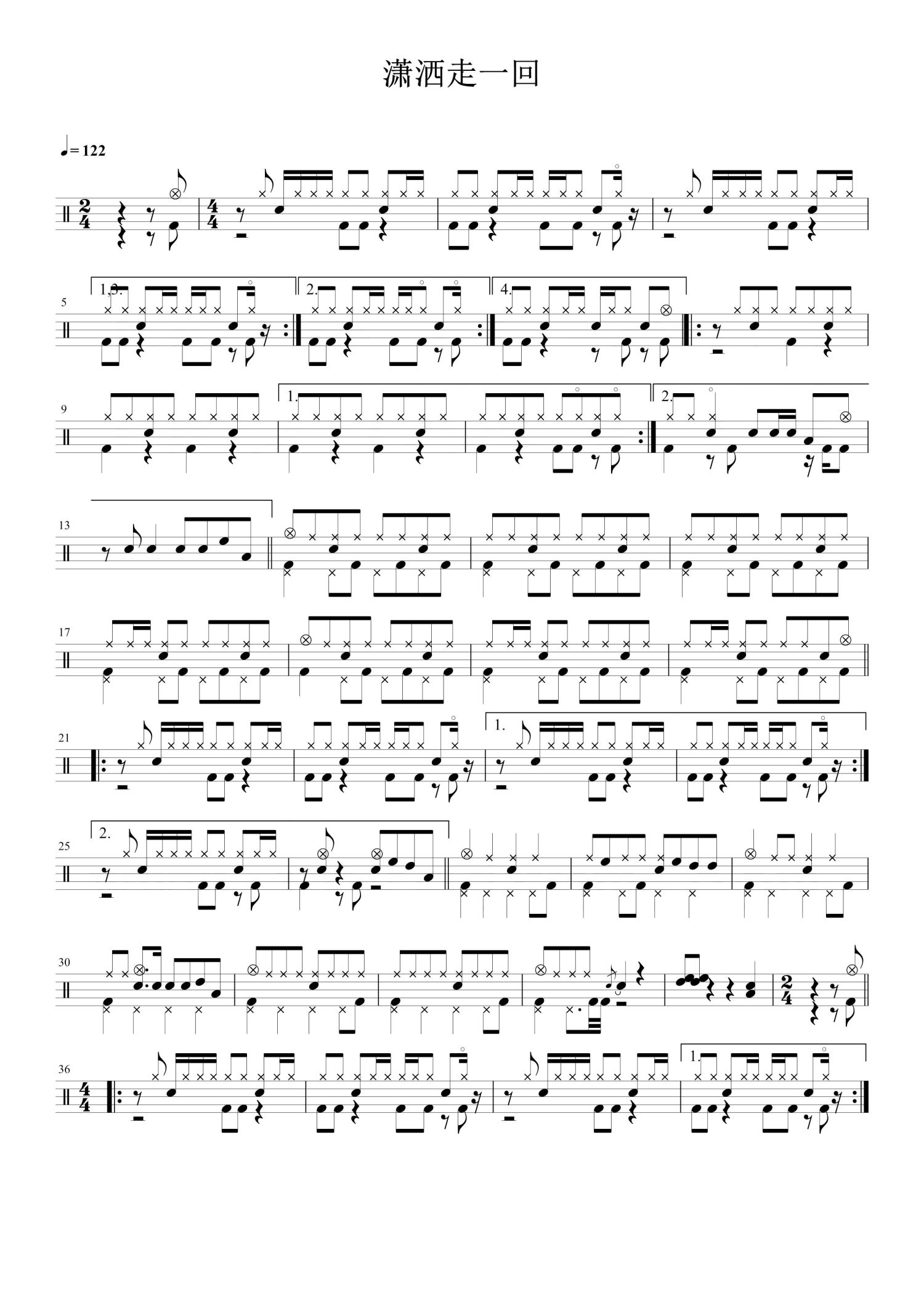 • 潇洒走一回鼓谱 - 二手玫瑰 - 架子鼓谱第1张