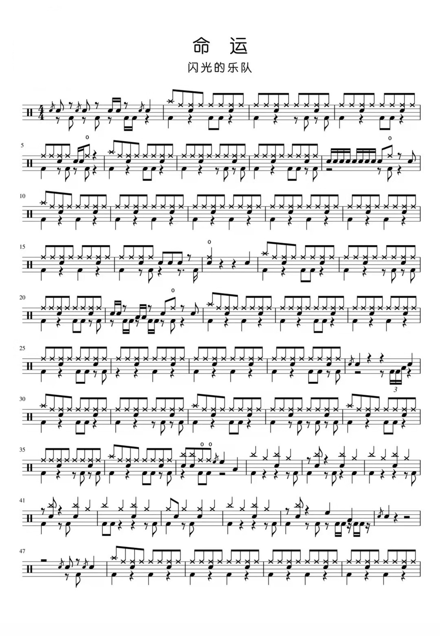 • 命运鼓谱 - 闪光的乐队 - 架子鼓谱第1张