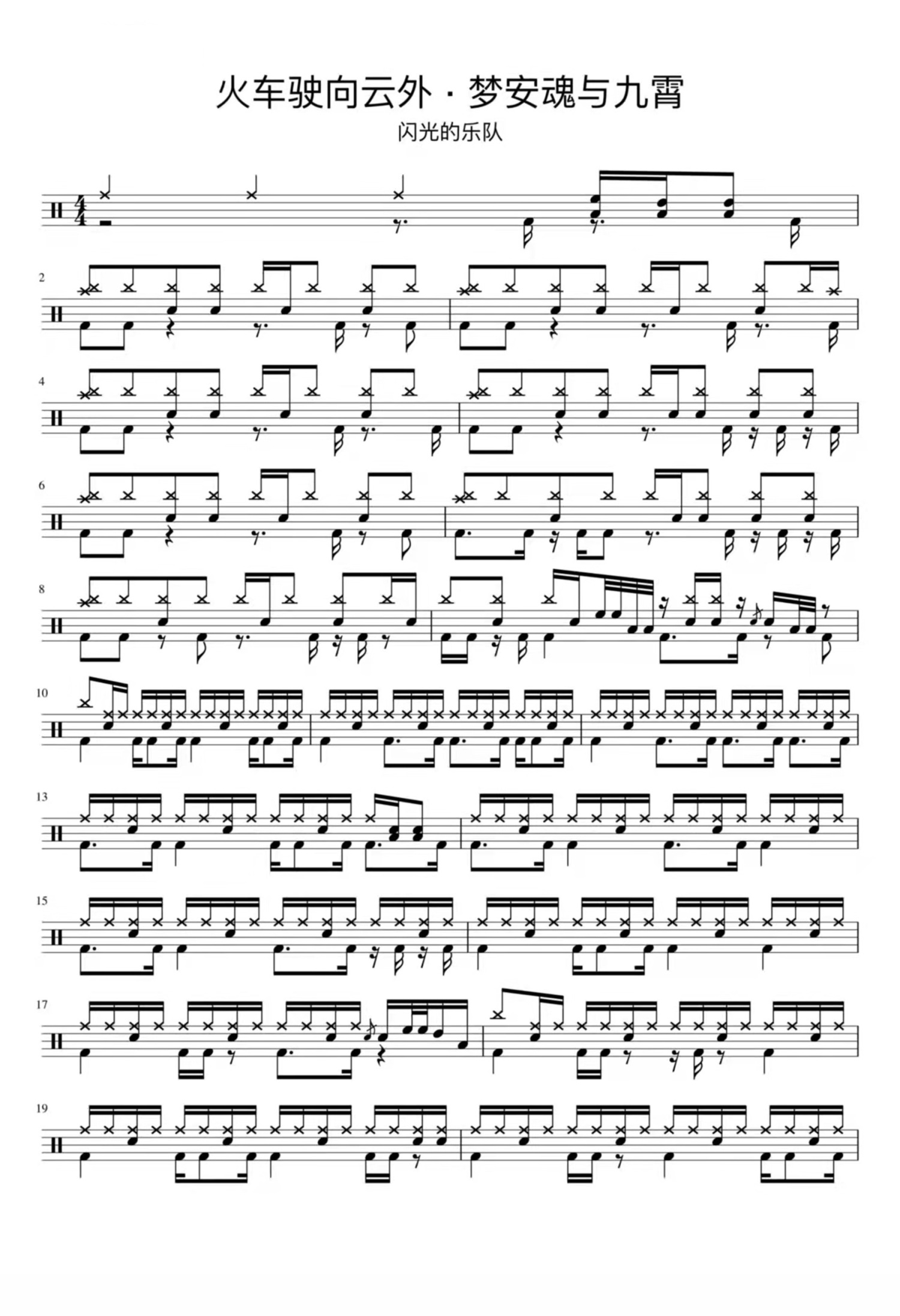 • 火车驶向云外-梦安魂与九霄鼓谱 - 闪光的乐队 - 架子鼓谱第1张