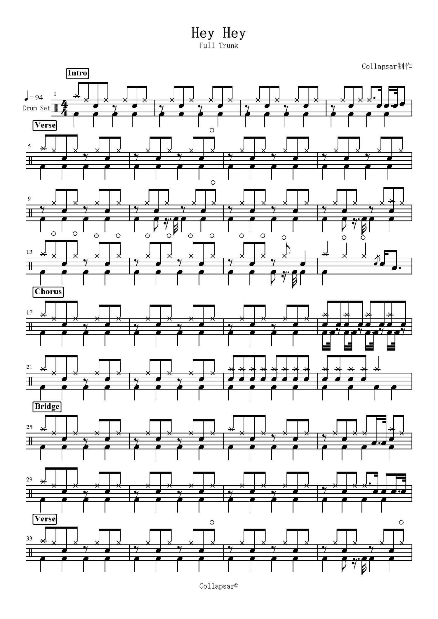 • Hey Hey鼓谱 - Full Trunk - 架子鼓谱第1张