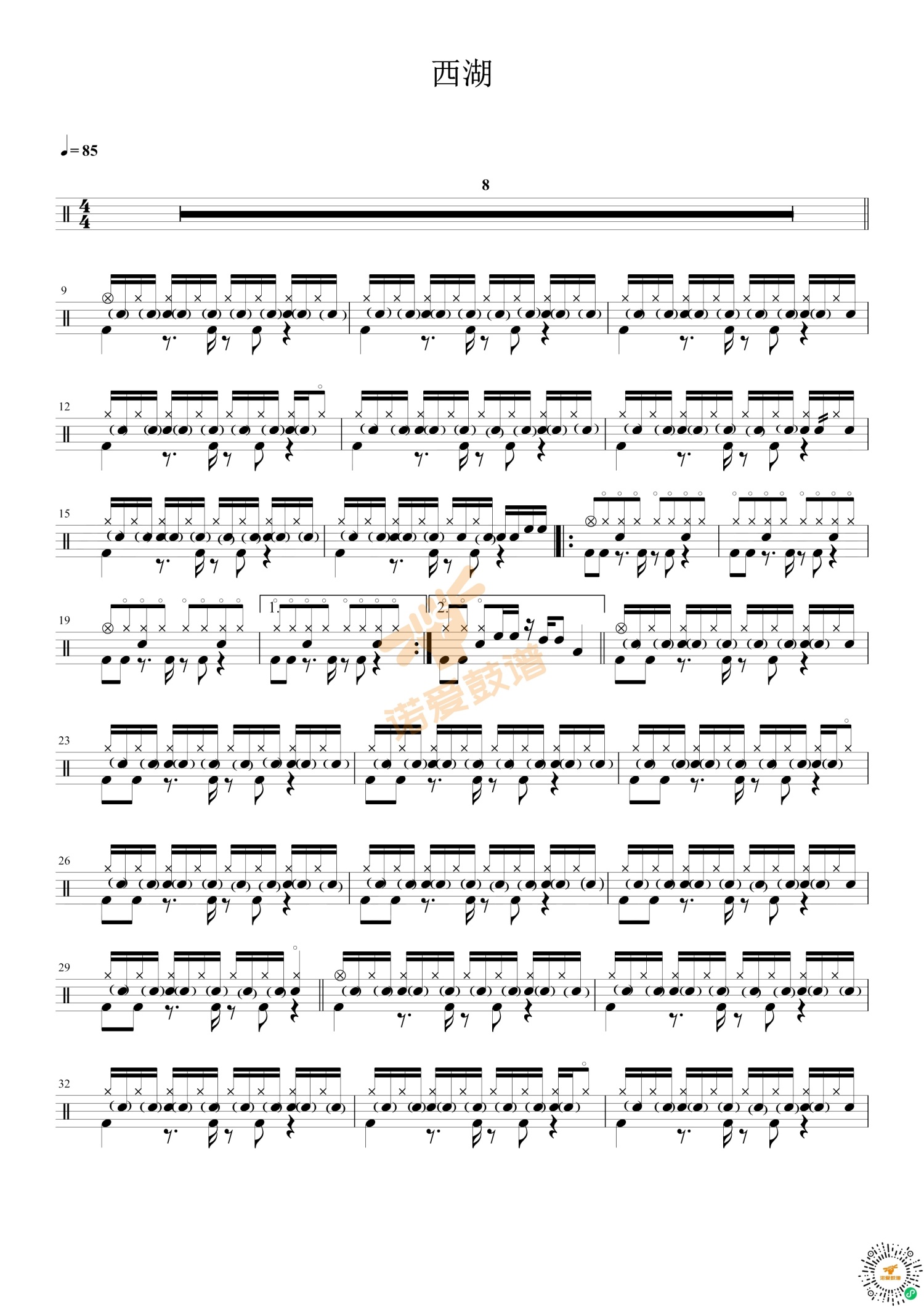 当前位置:琴谱网>架子鼓谱>西湖