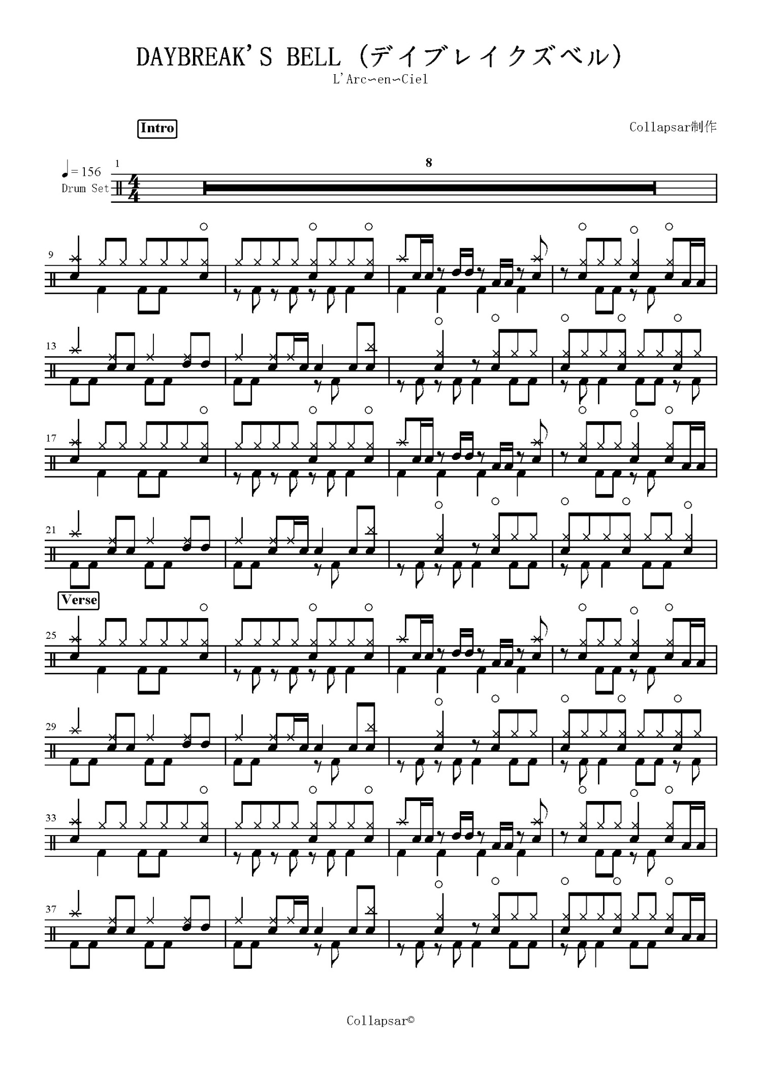 • DayBreak's Bell鼓谱 - L'Arc~en~Ciel(彩虹乐队) - 架子鼓谱第1张