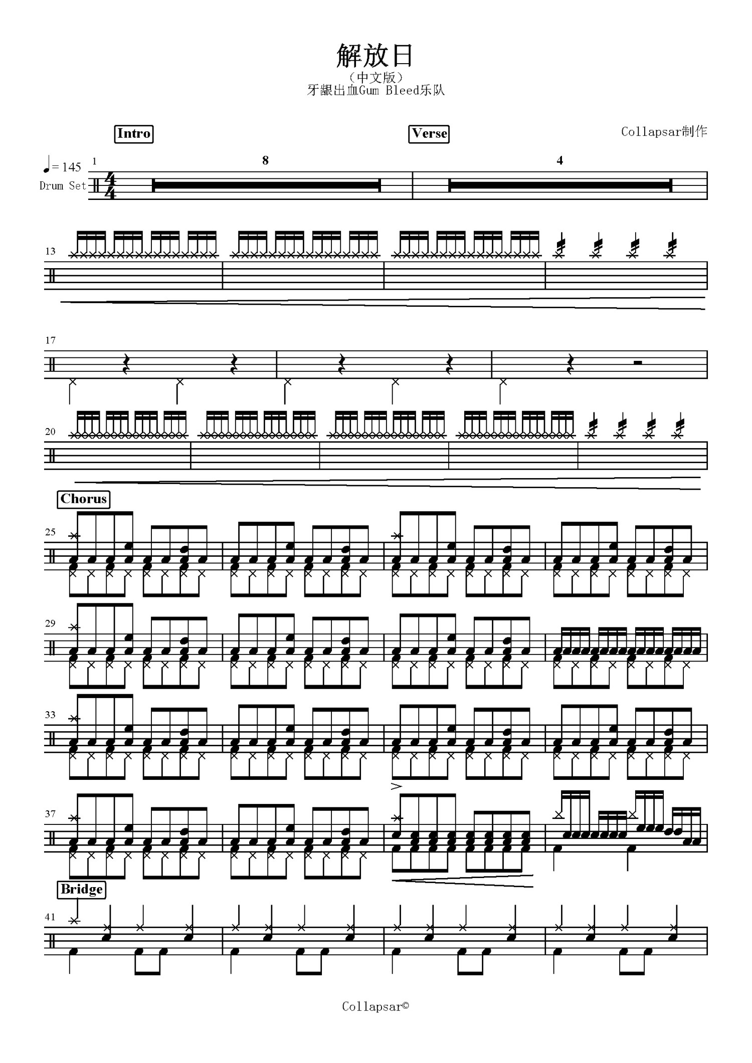 解放日鼓谱 - 牙龈出血Gum Bleed乐队 - 架子鼓谱 - 中文版