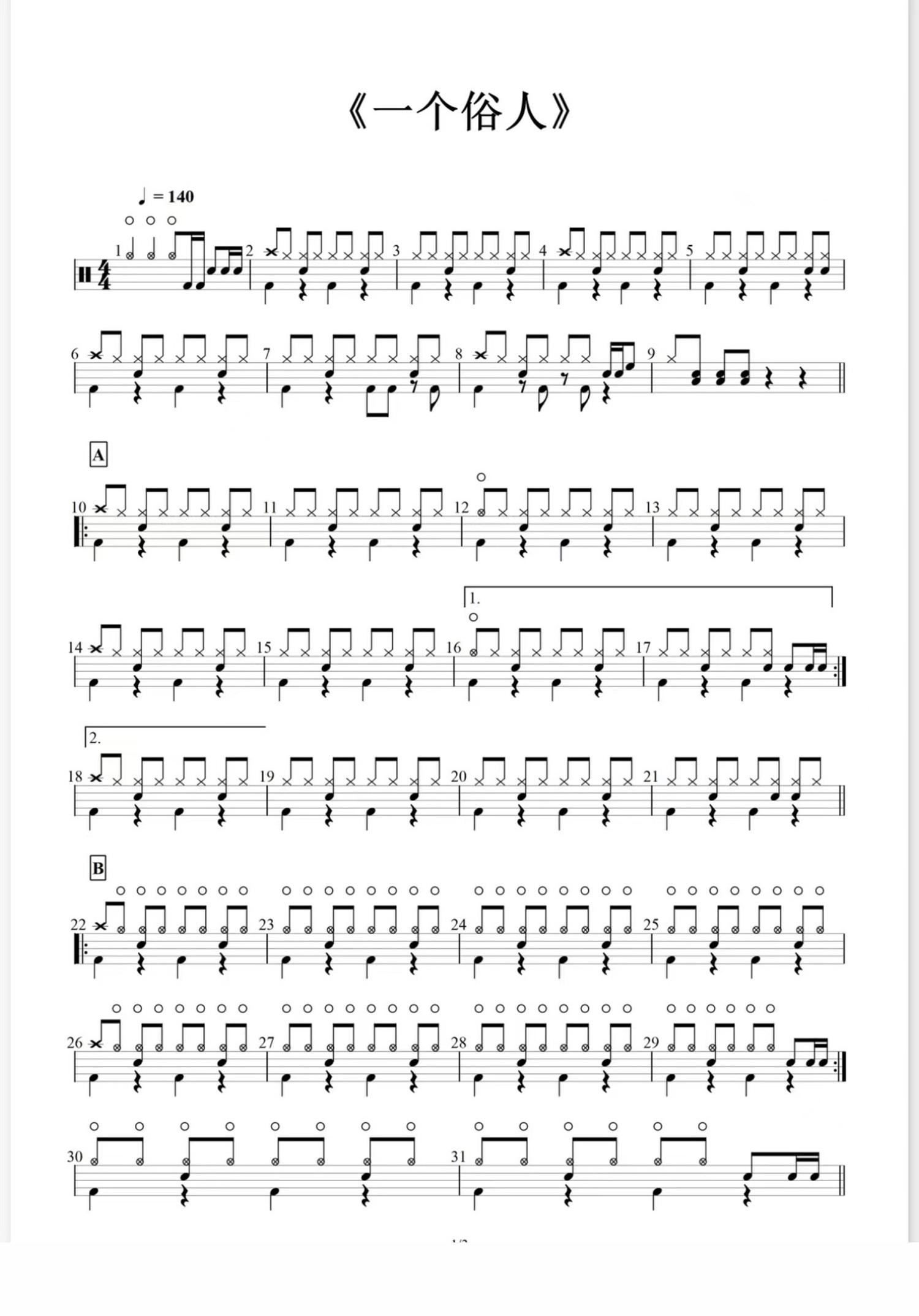 • 一个俗人鼓谱 - 怂鱼喵 - 架子鼓谱第1张
