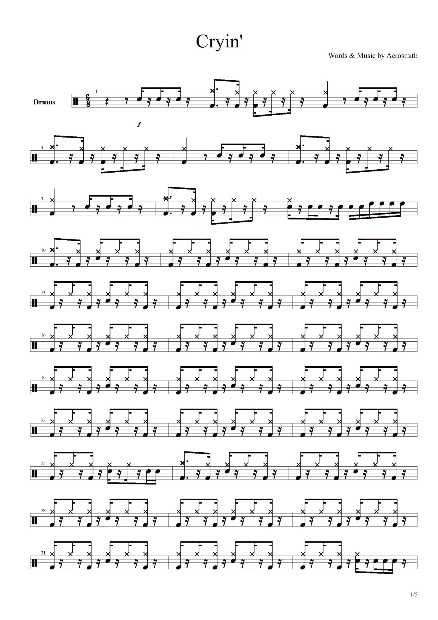 • Cryin’鼓谱 - Aerosmith - 架子鼓谱第1张