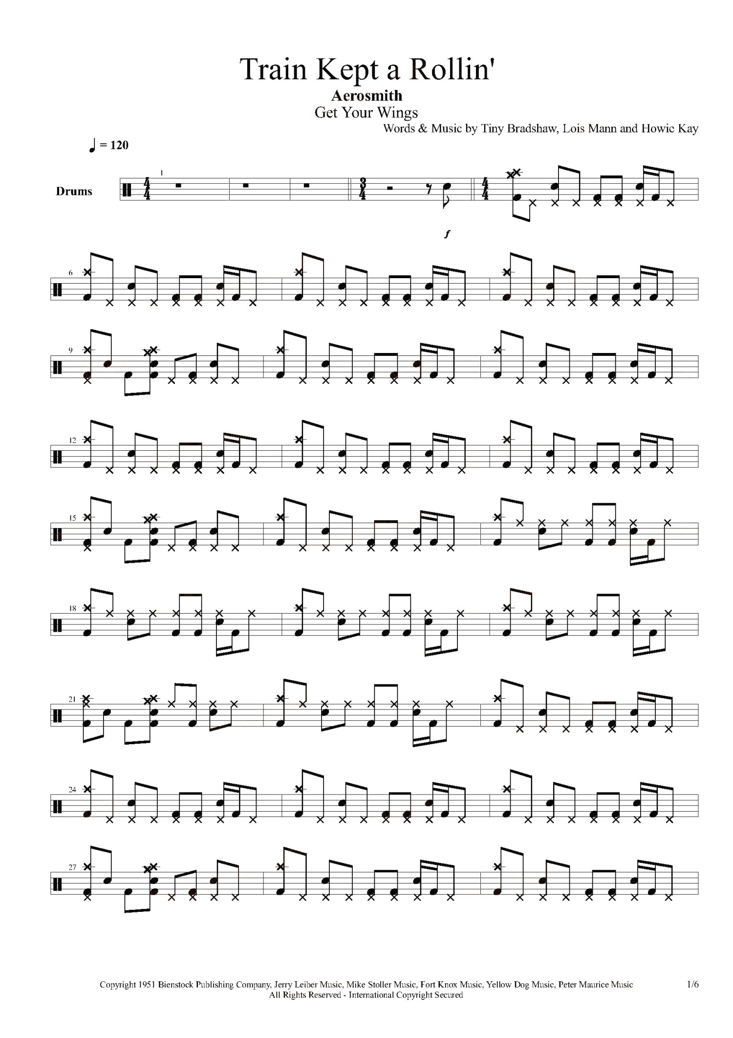 • Train Kept A Rollin鼓谱 - Aerosmith - 架子鼓谱第1张