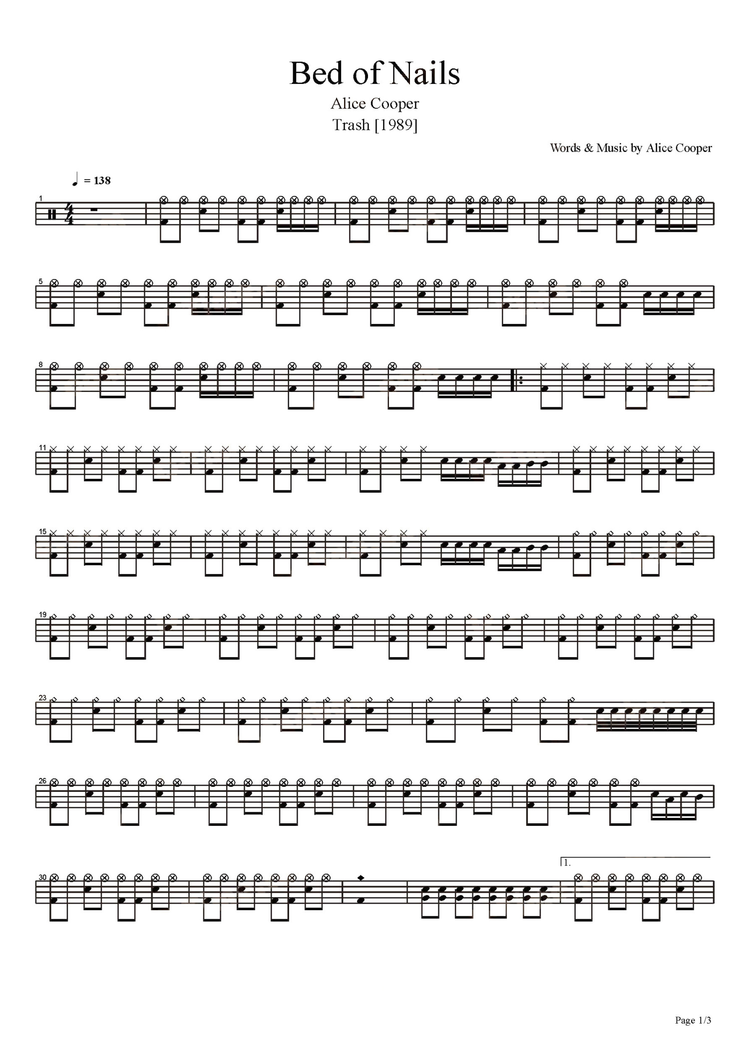 • Bed Of Nails鼓谱 - Alice Cooper - 架子鼓谱第1张