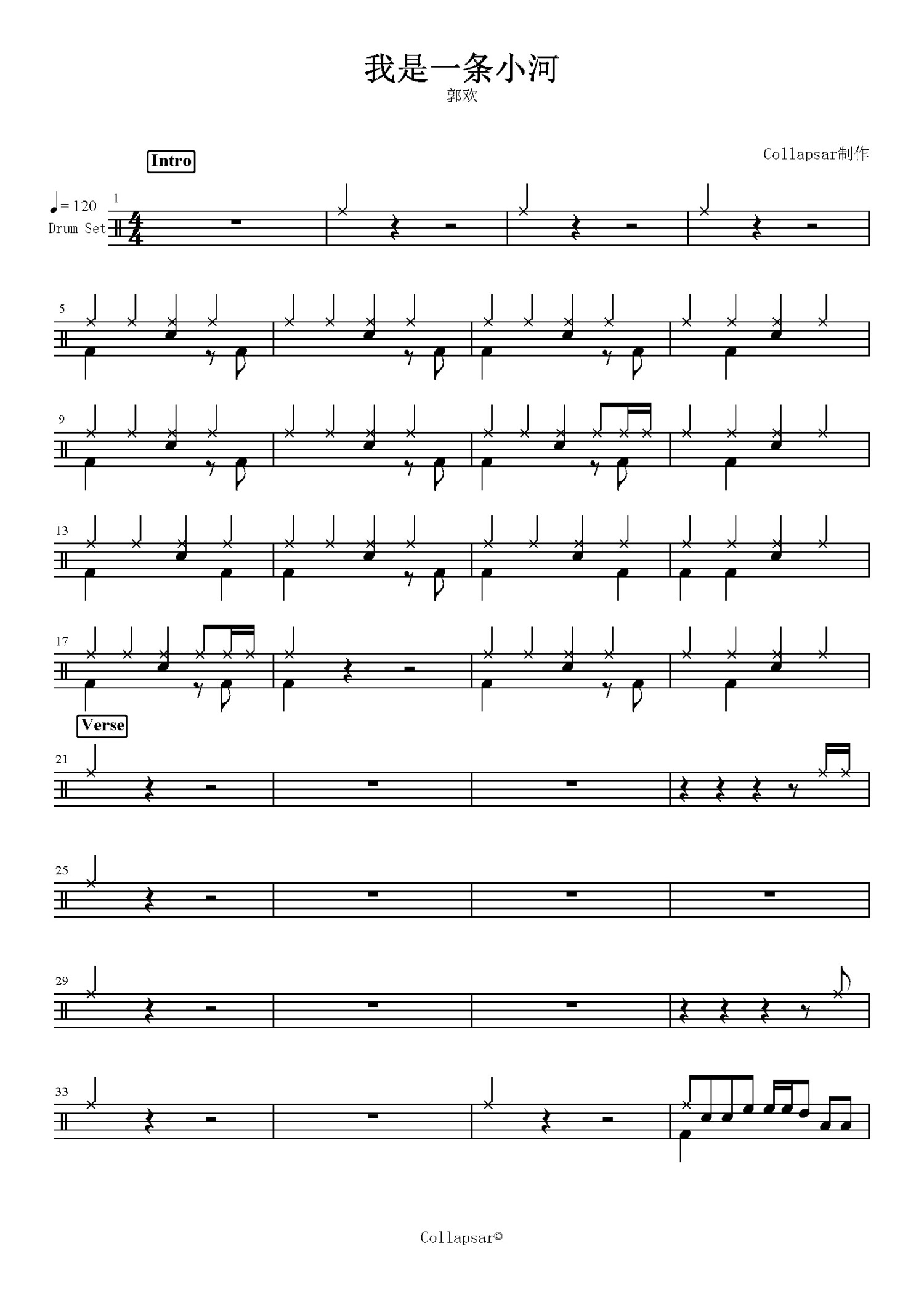 • 我是一条小河鼓谱 - 郭欢 - 架子鼓谱第1张