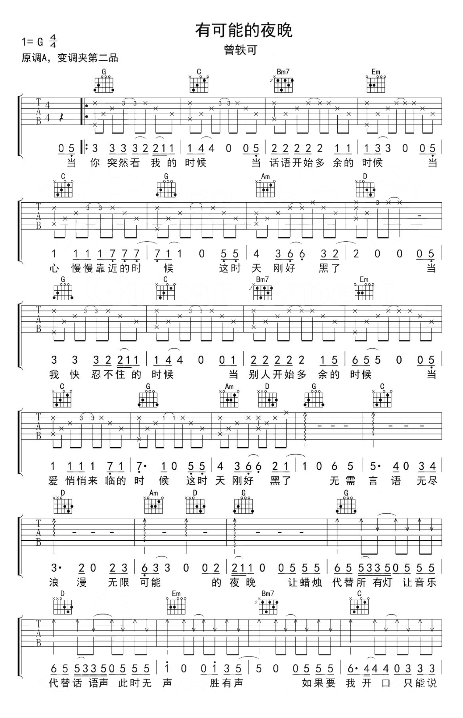 • 有可能的夜晚吉他谱 - 曾轶可 - G调吉他弹唱谱第1张