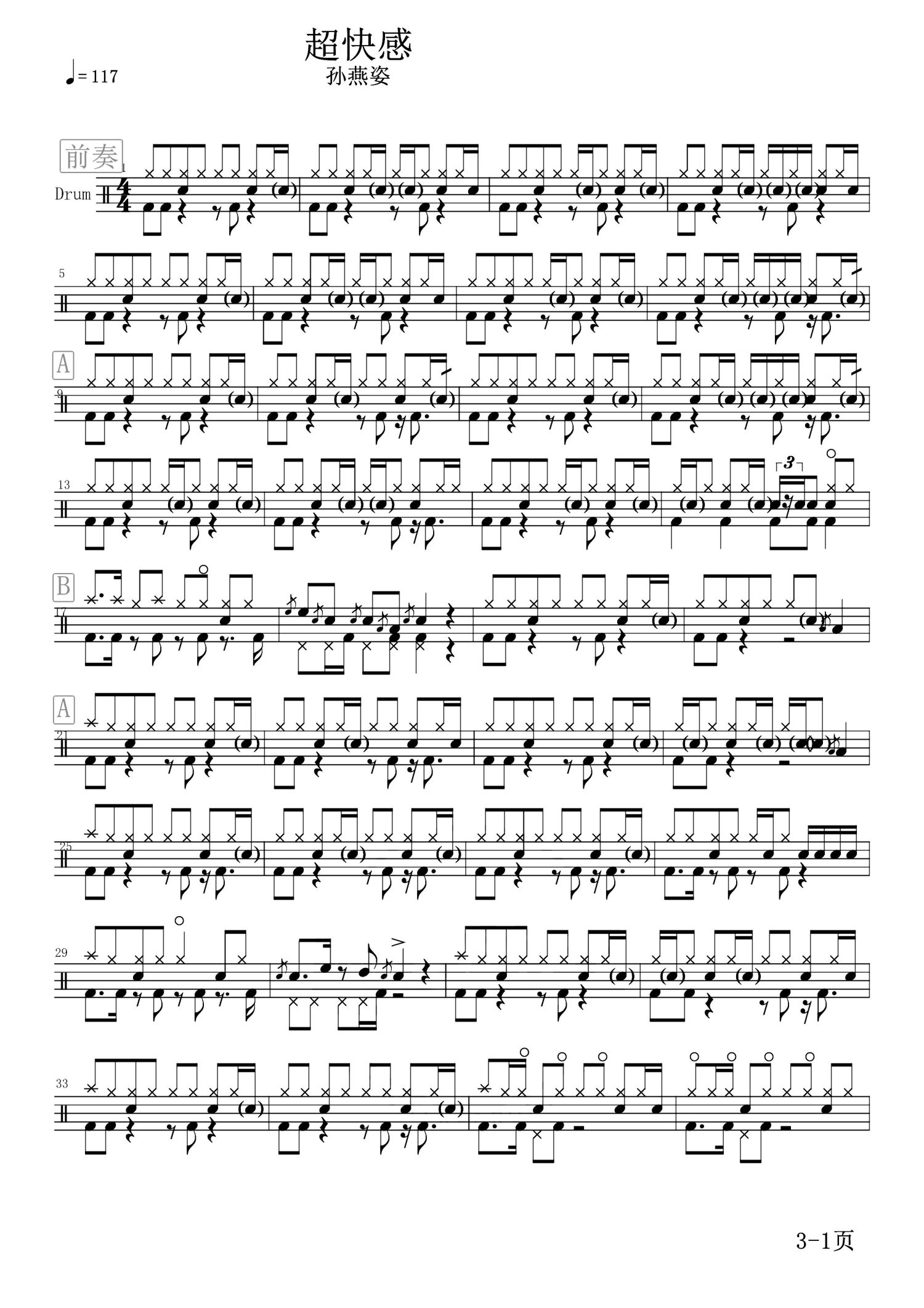 • 超快感鼓谱 - 孙燕姿 - 架子鼓谱第1张