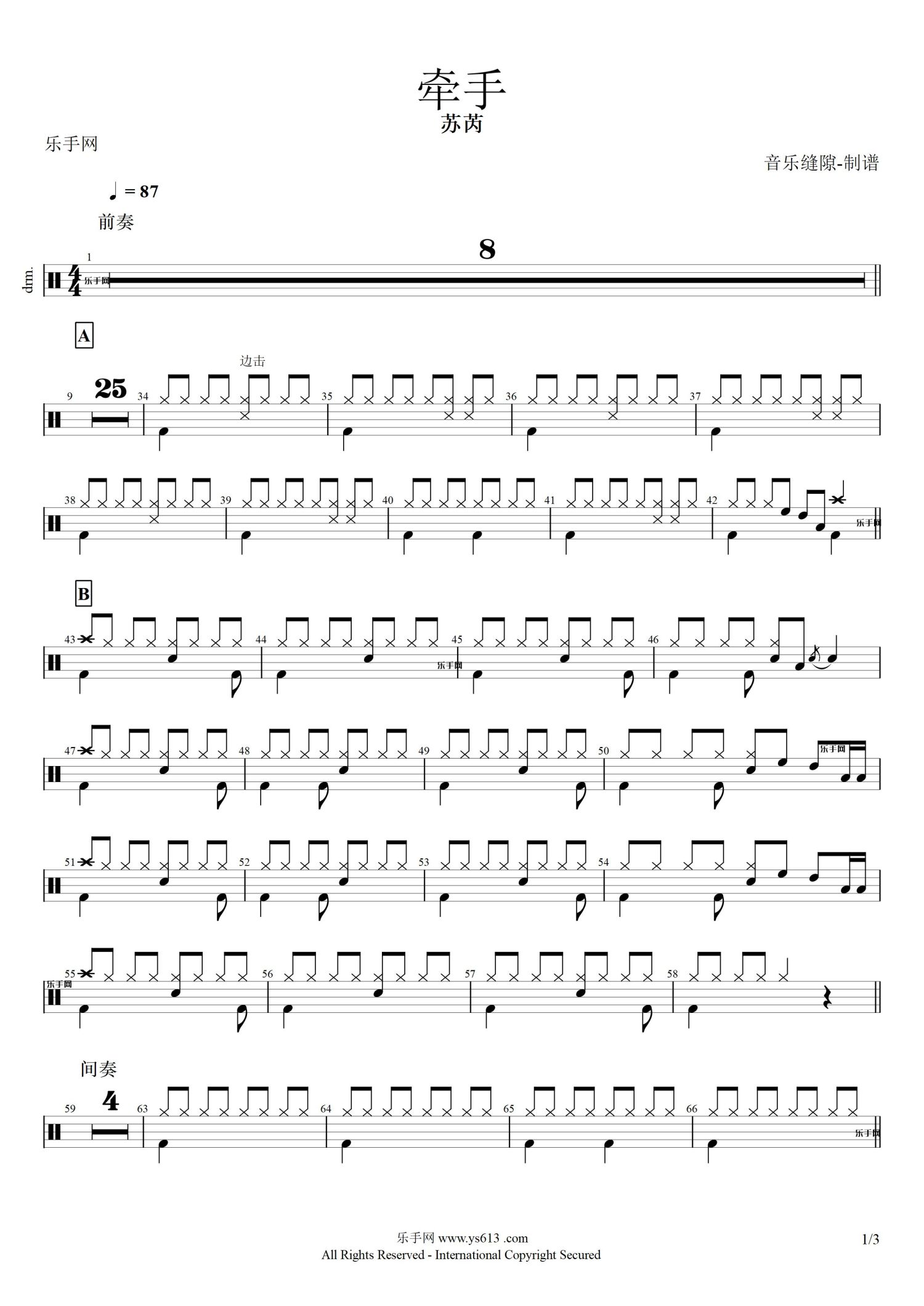 • 牵手鼓谱 - 牵手 - 架子鼓谱第1张
