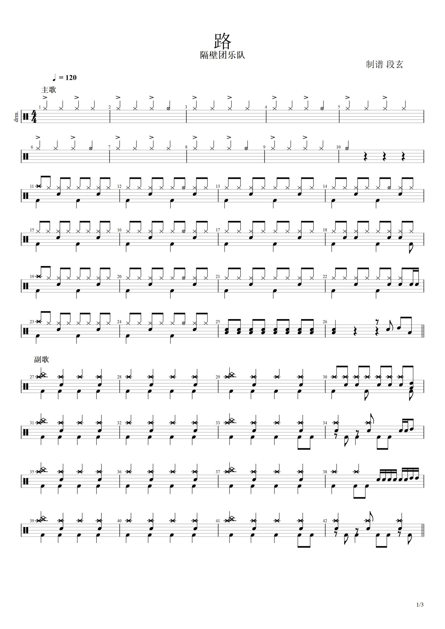 • 路鼓谱 - 隔壁团乐队 - 架子鼓谱第1张