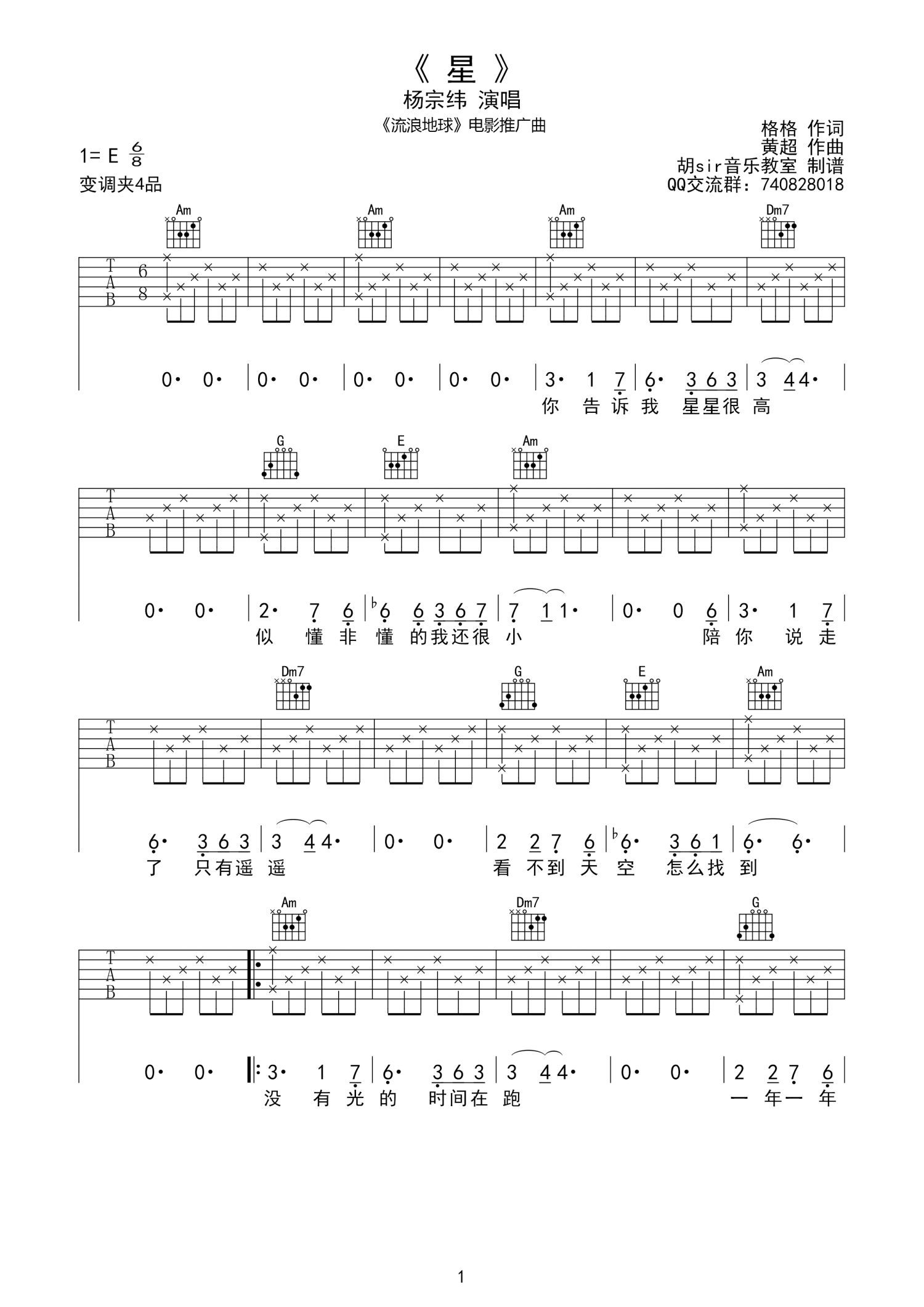 • 星吉他谱 - 杨宗纬 - 吉他弹唱谱第1张
