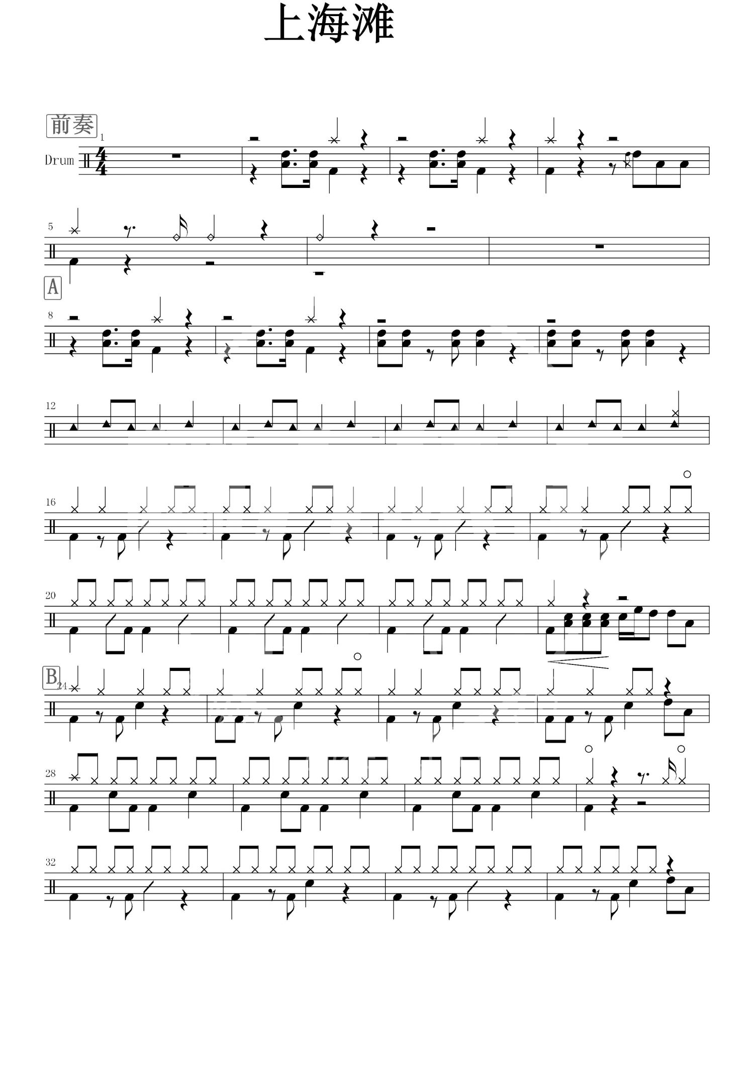 • 上海滩鼓谱 - 刘德华 - 架子鼓谱第1张