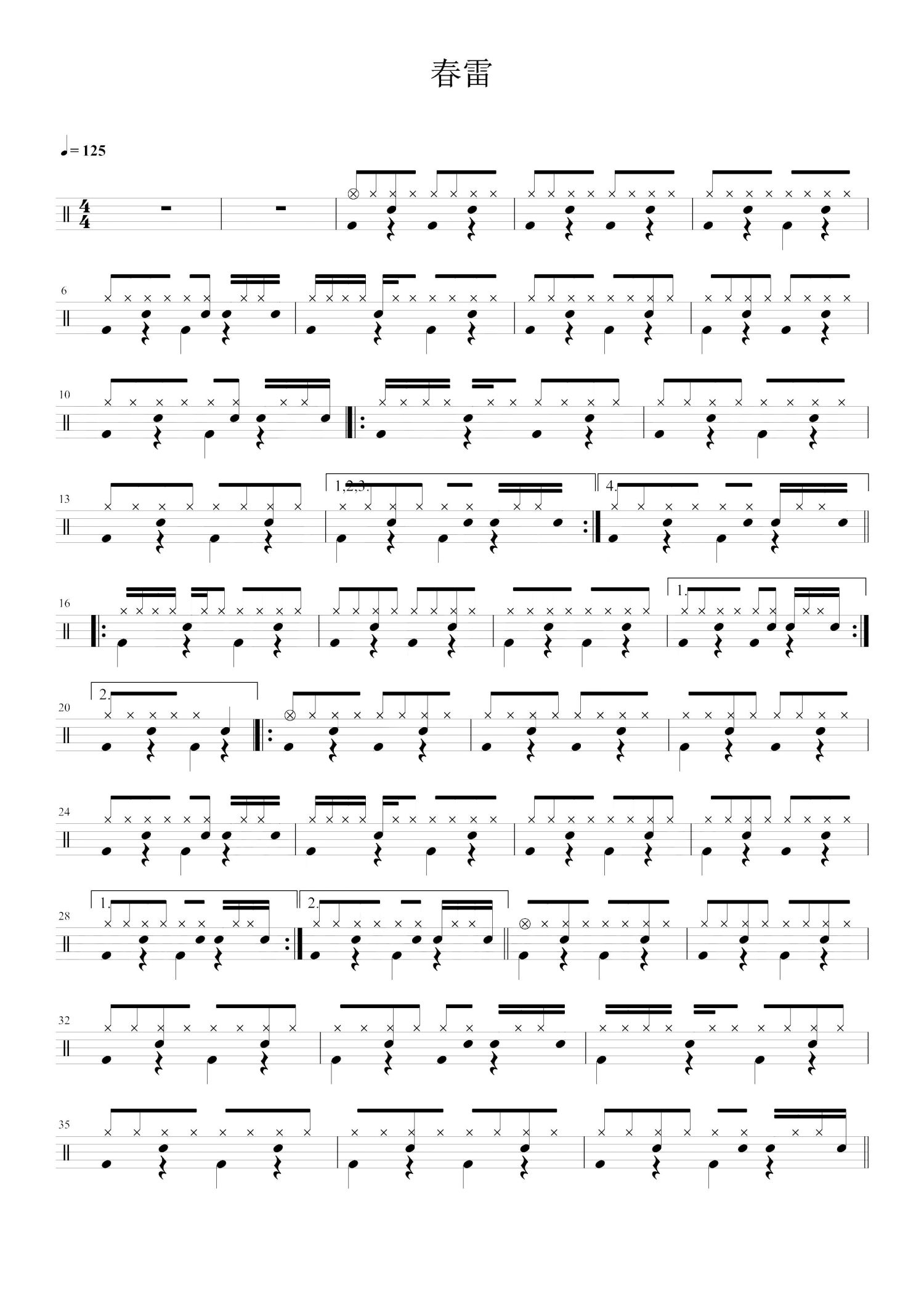当前位置:琴谱网>架子鼓谱>春雷