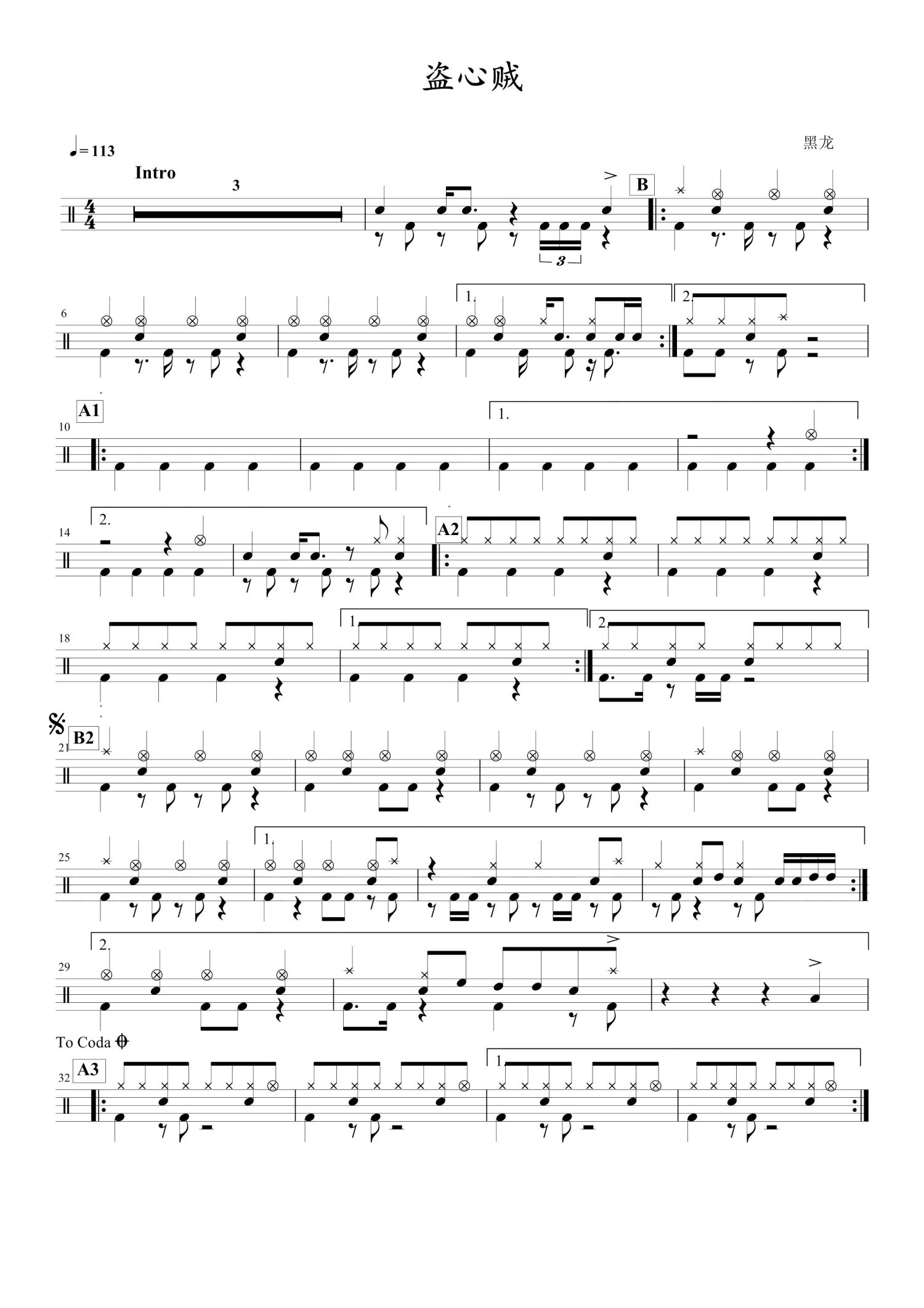 盗心贼鼓谱 - 黑龙 - 架子鼓谱