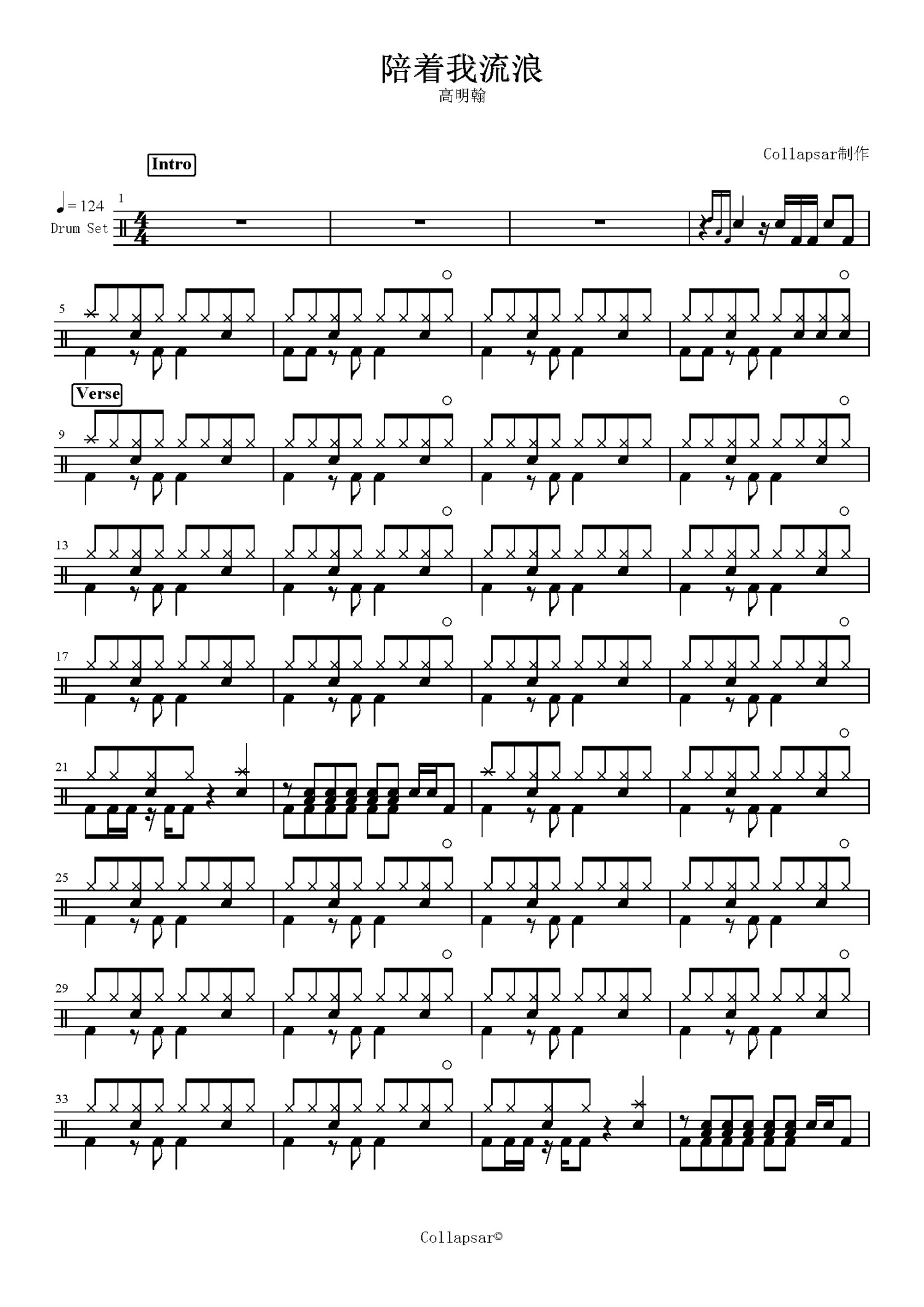 • 陪着我流浪鼓谱 - 高明瀚 - 架子鼓谱第1张