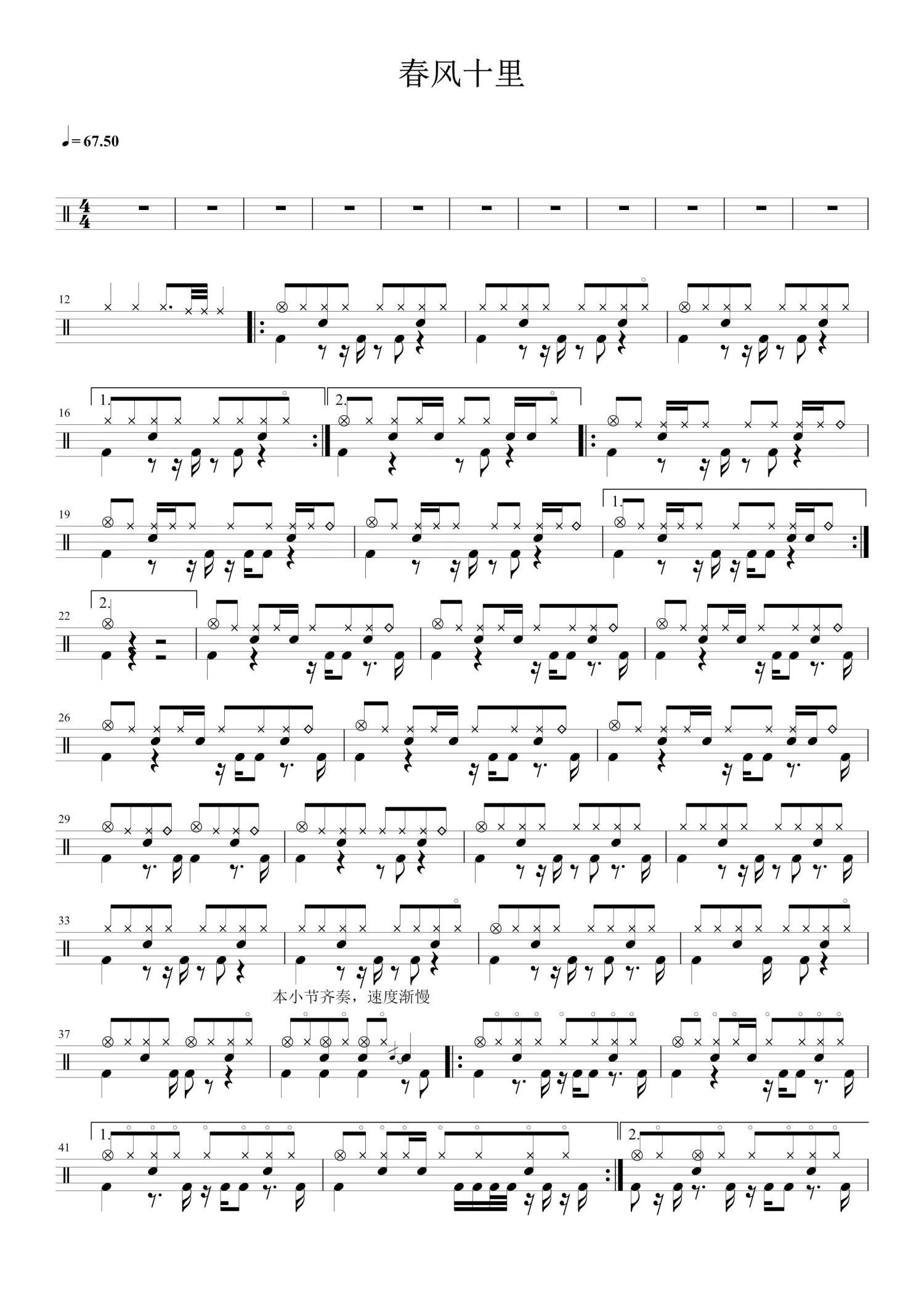 • 春风十里鼓谱 - 鹿先森乐队 - 架子鼓谱第1张