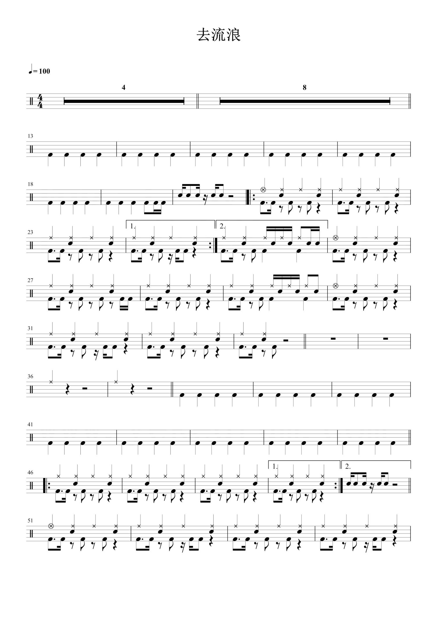 • 去流浪鼓谱 - 周笔畅 - 架子鼓谱第1张