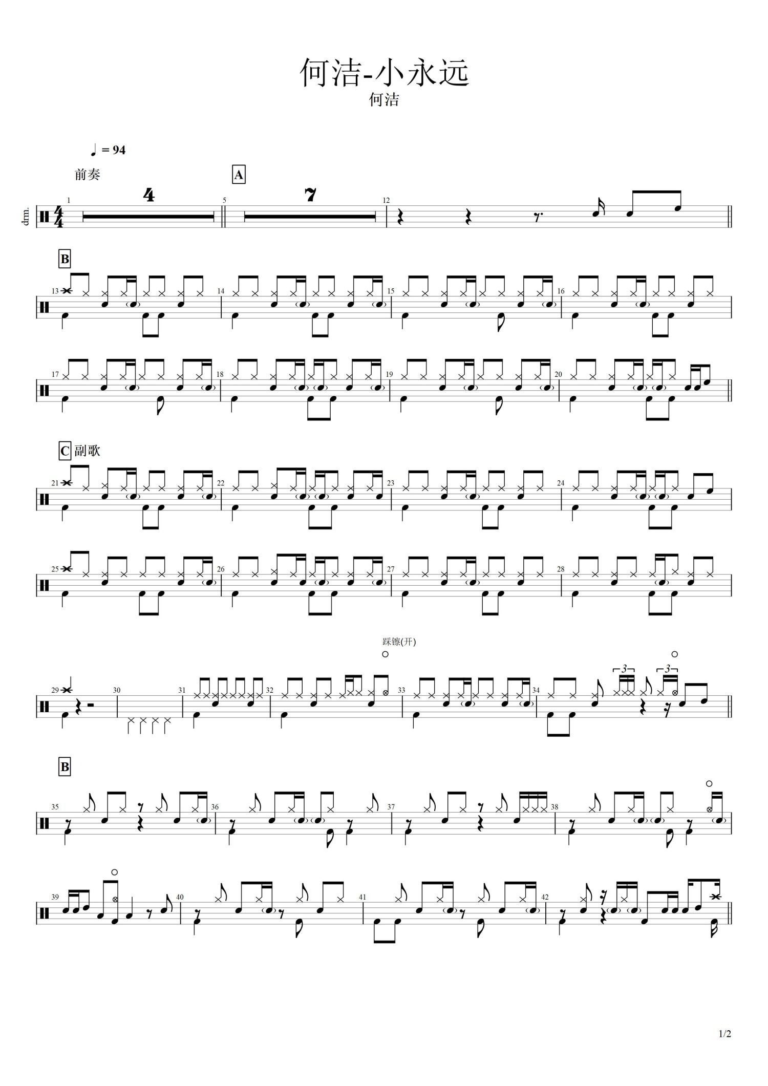 • 小永远鼓谱 - 何洁 - 架子鼓谱第1张