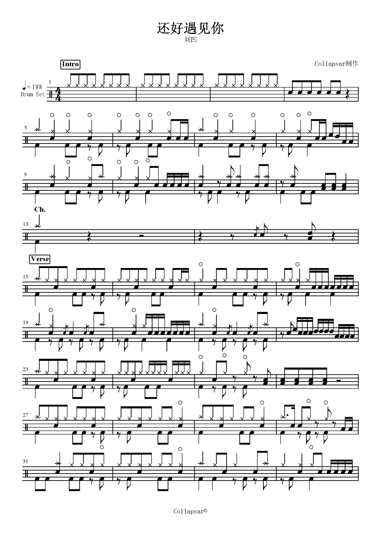 • 还好遇见你鼓谱 - 刘凹 - 架子鼓谱第1张