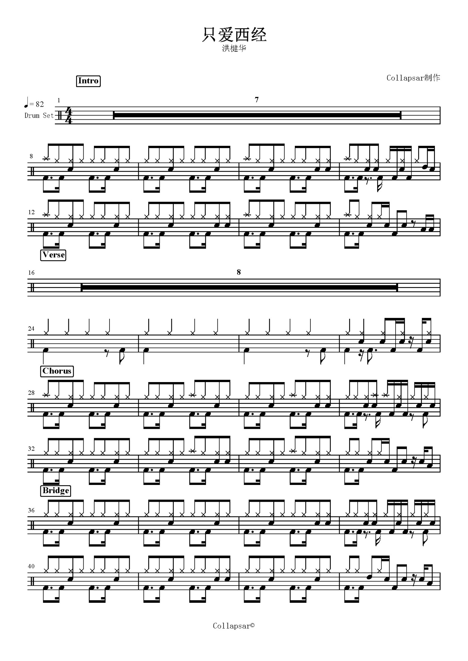 当前位置:琴谱网>架子鼓谱>只爱西经