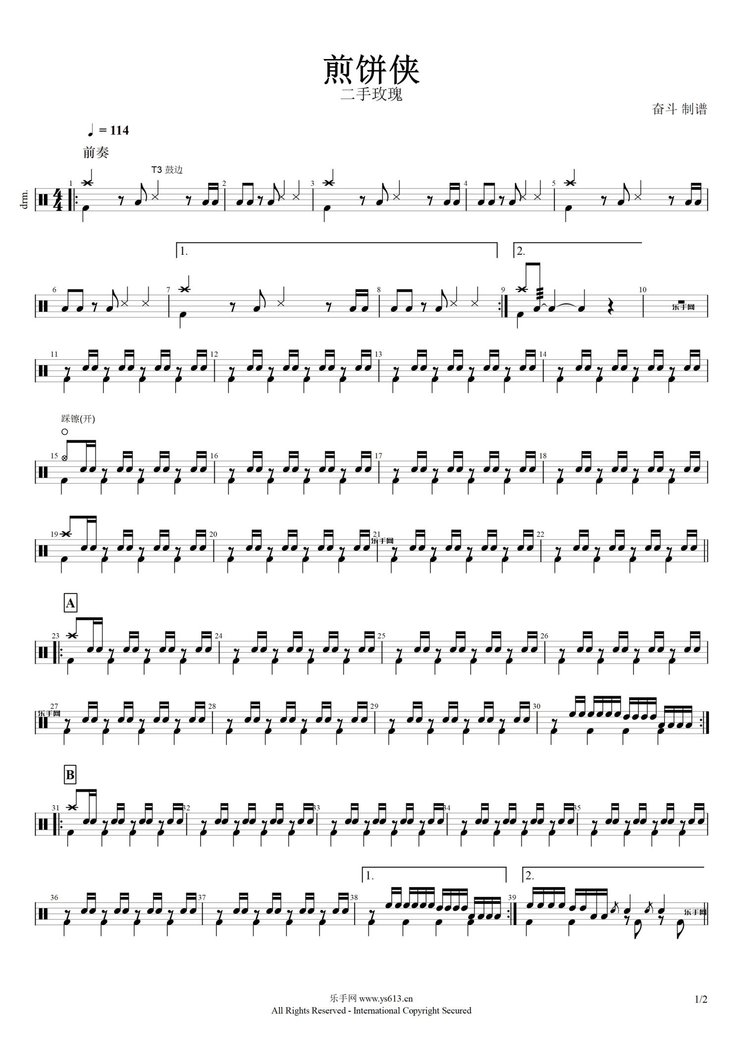 • 煎饼侠鼓谱 - 煎饼侠 - 架子鼓谱第1张
