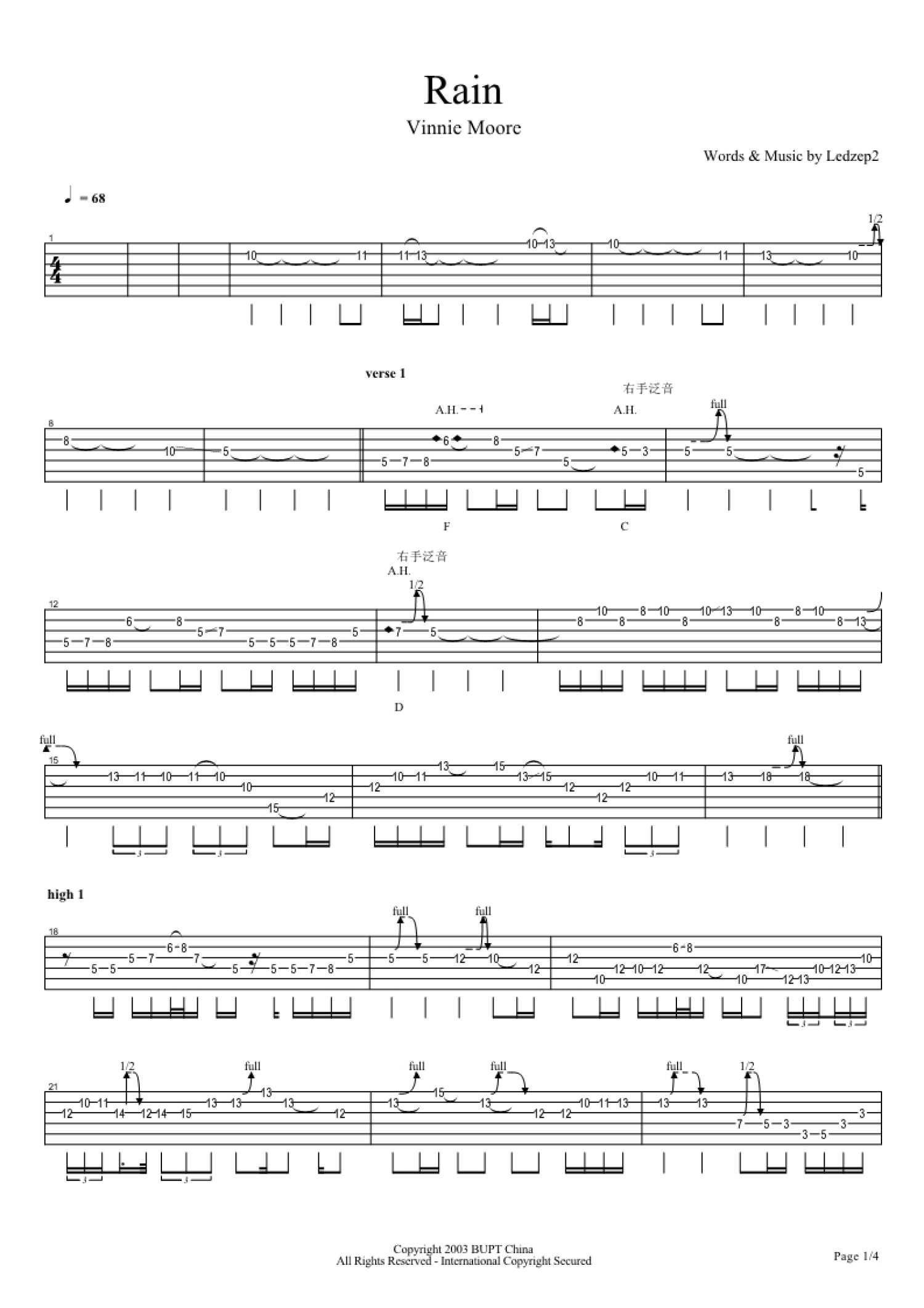 曲谱介绍: 吉他大师VinnieMoore-Rain吉他谱