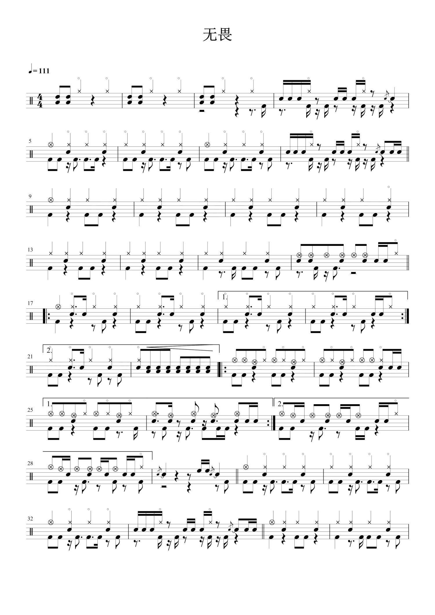 当前位置:琴谱网>架子鼓谱>无畏