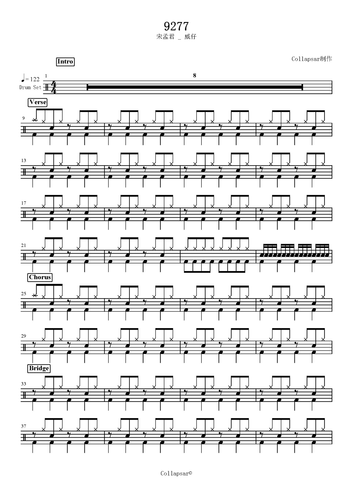 9277鼓谱 - 宋孟君和威仔 - 架子鼓谱