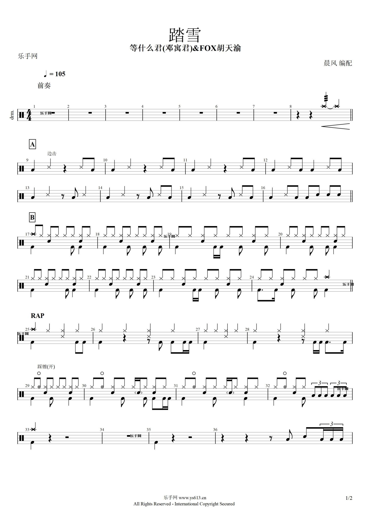 当前位置:琴谱网>架子鼓谱>踏雪