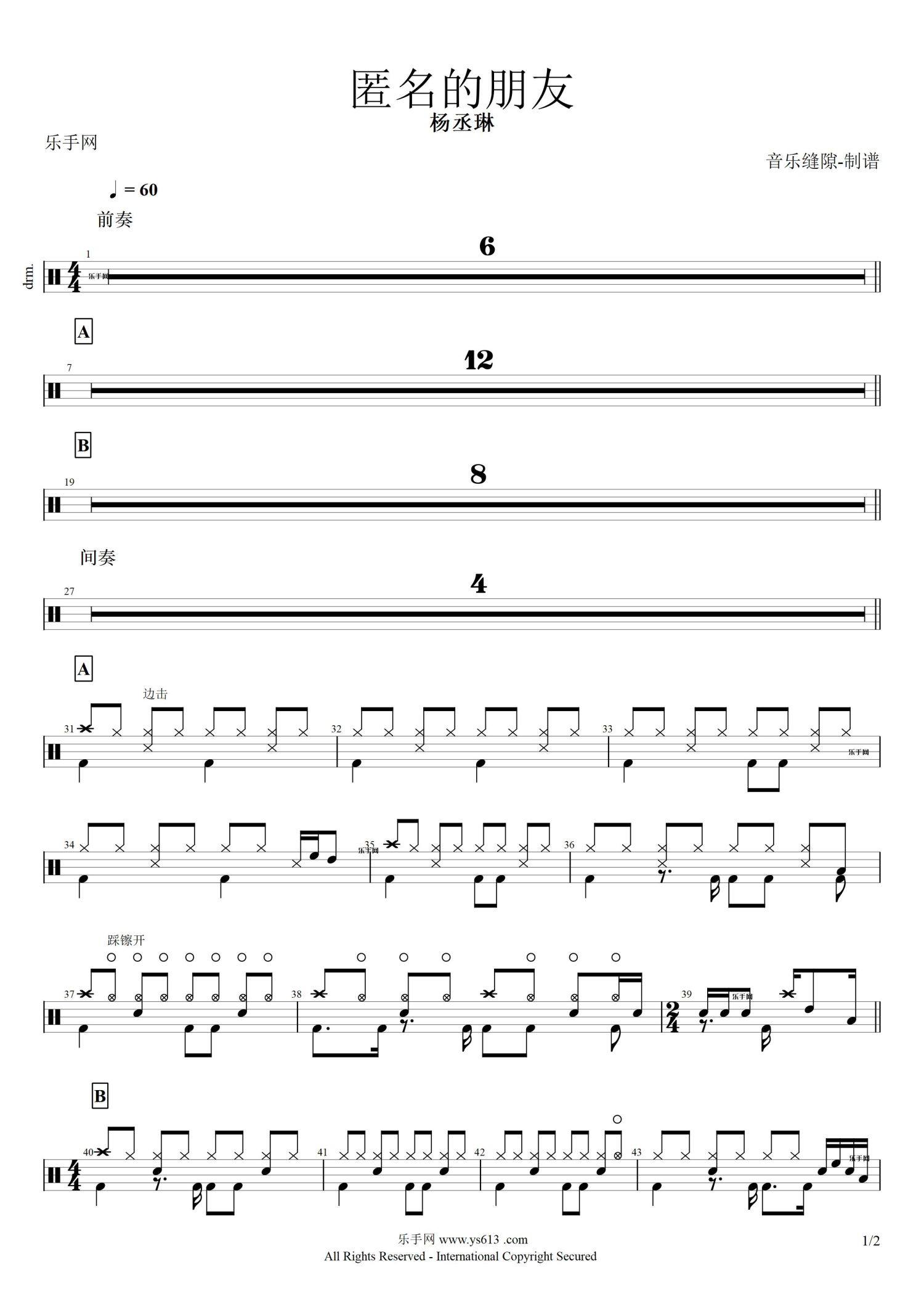 • 匿名的朋友鼓谱 - 杨丞琳 - 架子鼓谱第1张